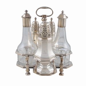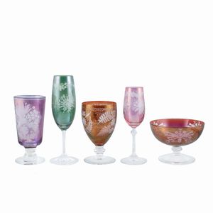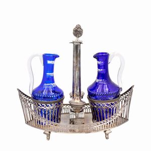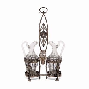 8x98x80 cm. Italia, bollo Fascio, anni 30-40 composto da un vassoio a specchio dal bordo mistilineo poggiante [..]