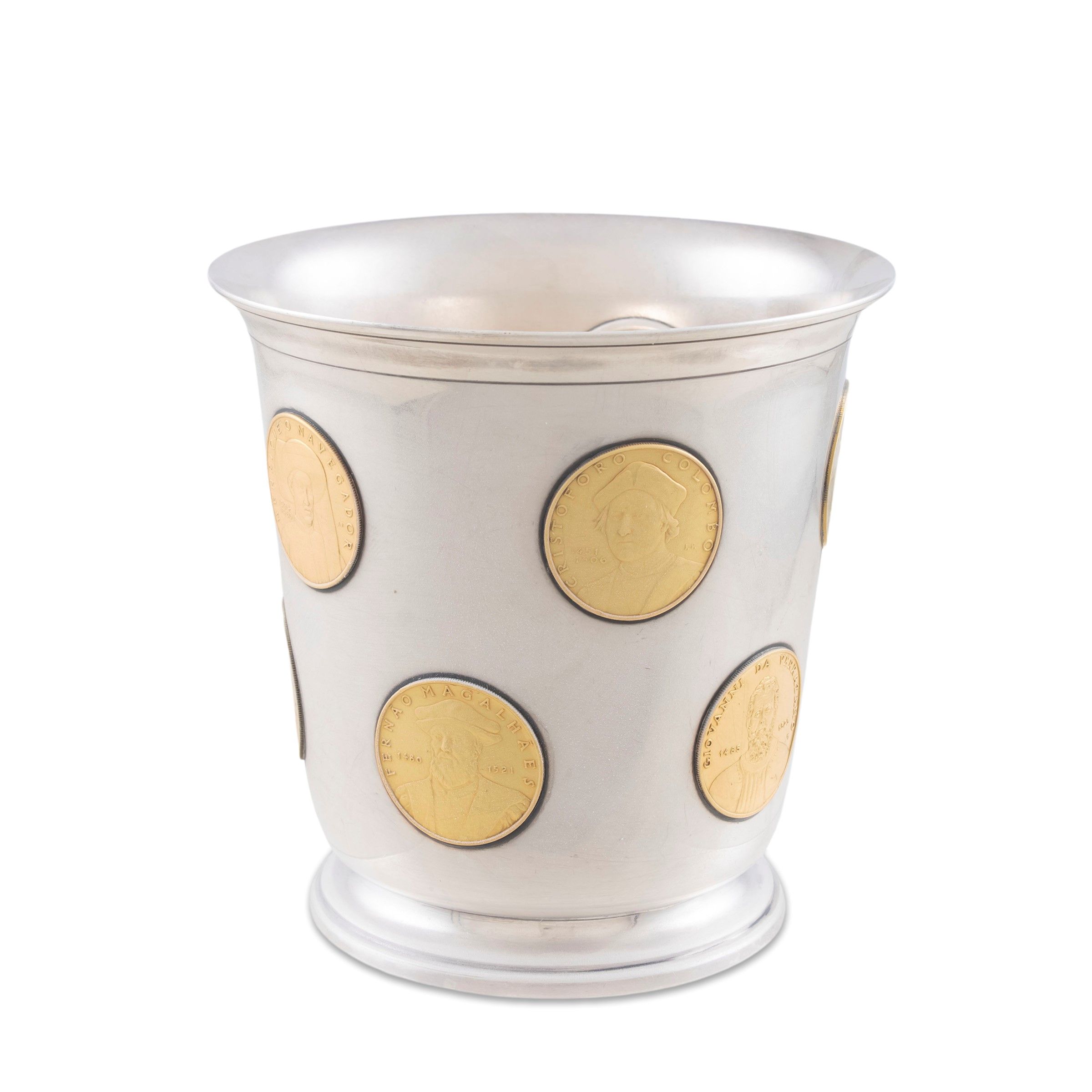 Italia, XX Sec. corpo liscio con applicate dieci medaglie commemorative Cristoforo Colombo Trans Mare Currvnt in argento dorato, firmato, peso 637 gr.