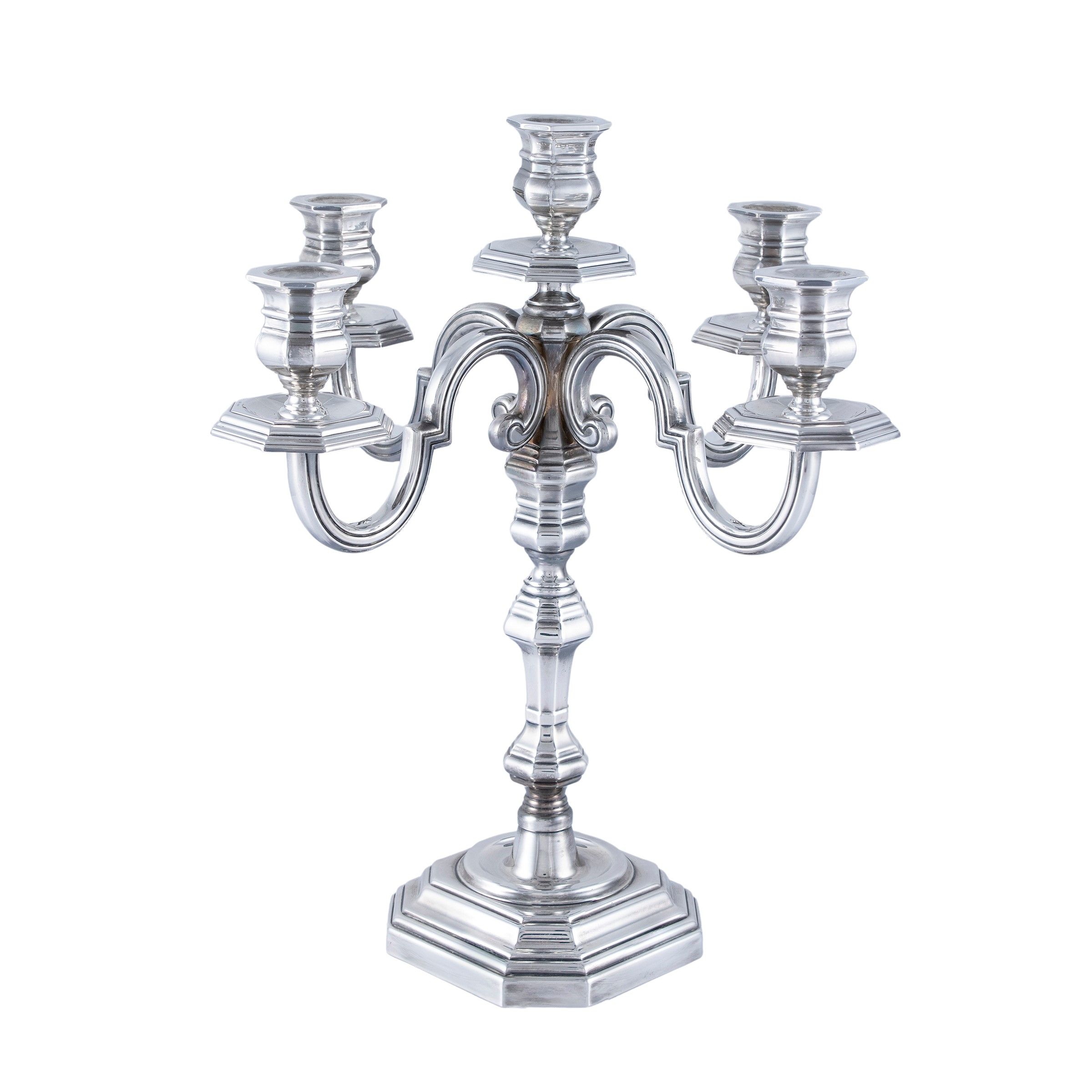 Candelabro in argento a cinque luci