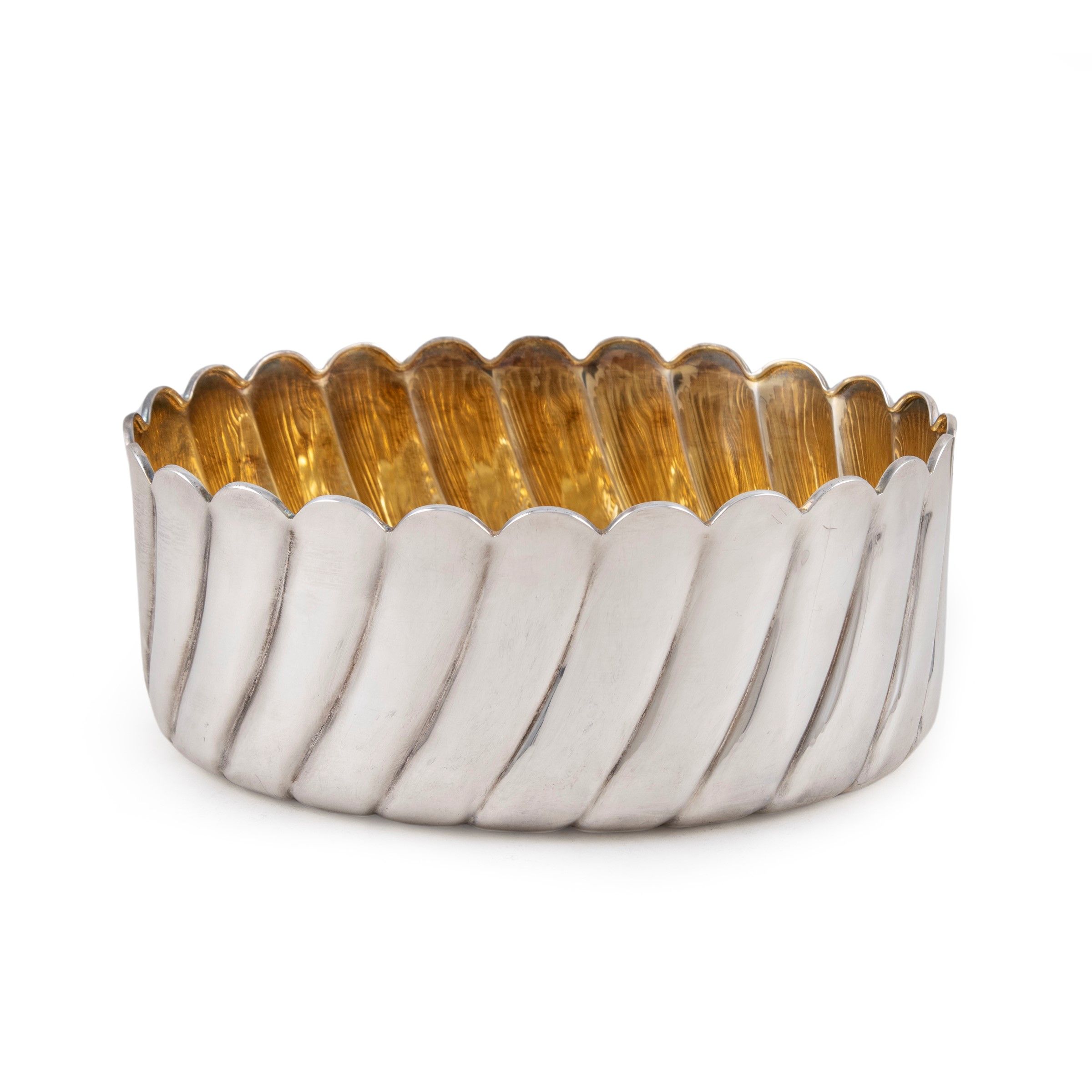 Italia, XX Sec. orafi F.lli Zaramella, Padova, corpo ovale baccellato con profilo smerlato, interno in vermeil, peso 658 gr.