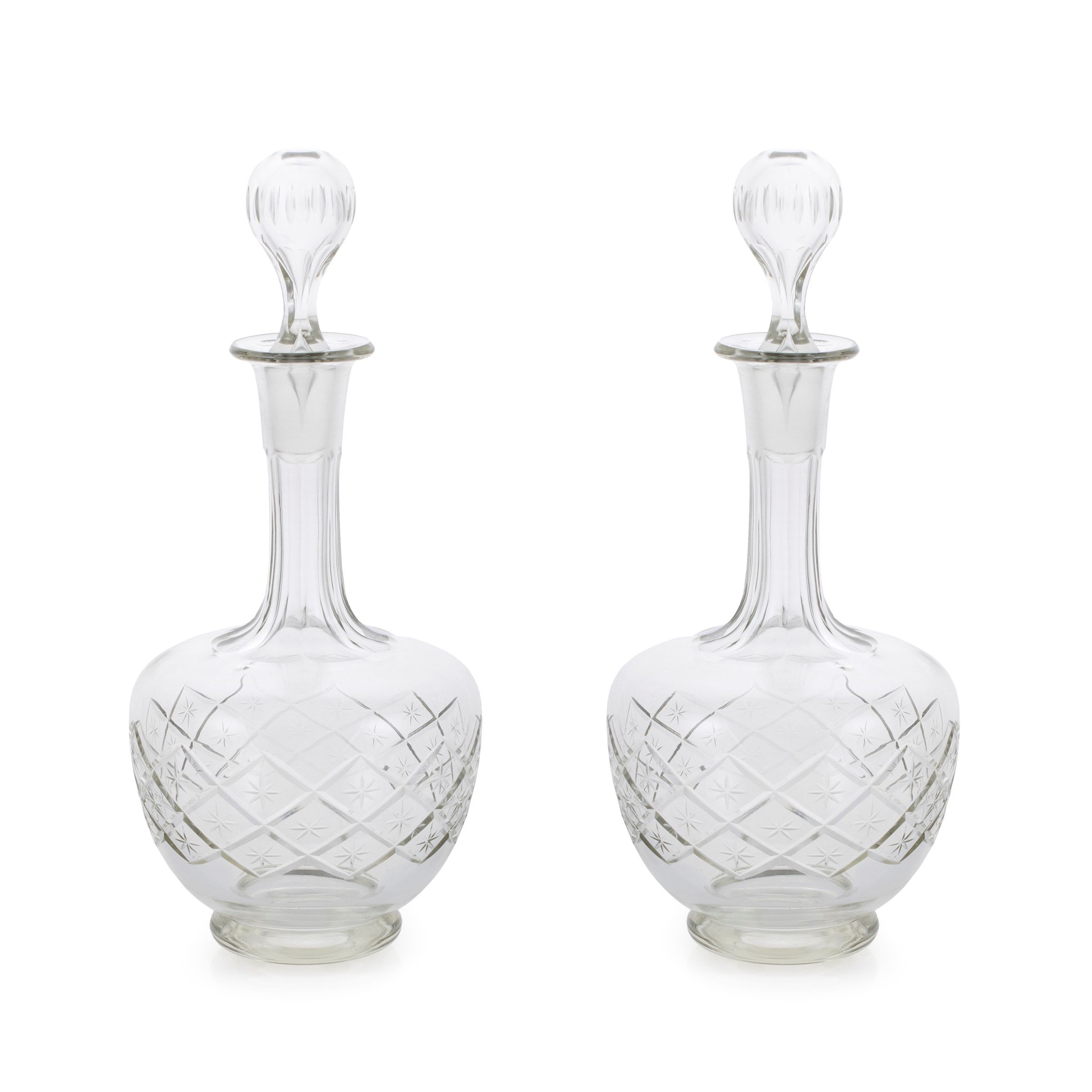 XVIII-XIX Sec. in cristallo molato con motivi geometrici, complete di tappi