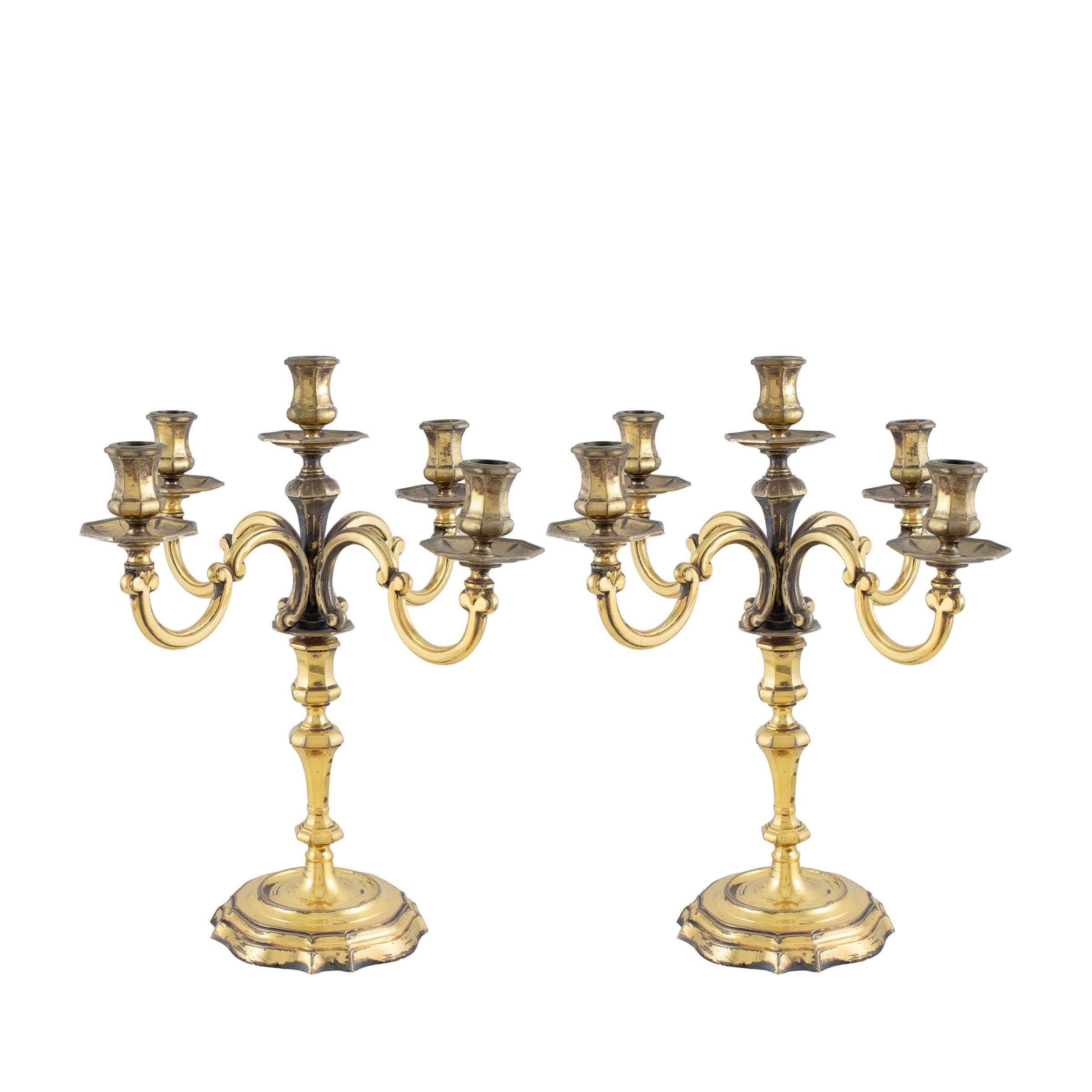 Coppia di candelabri a conque fiamme in vermeil