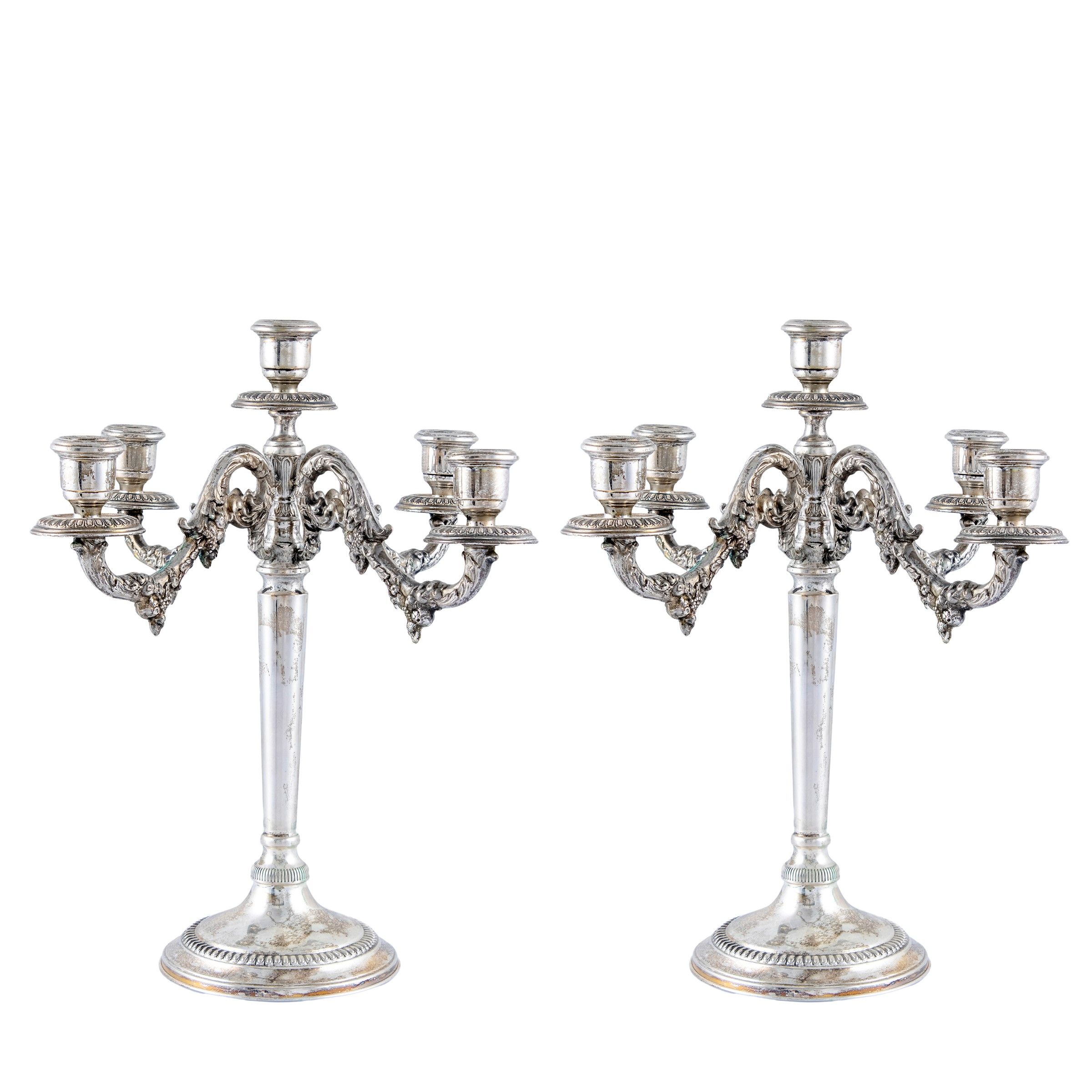 Italia, XX Sec. bracci cesellati e decorati con motivi di frutta e motivi vegetali, basi circolari, peso lordo 1813 gr.