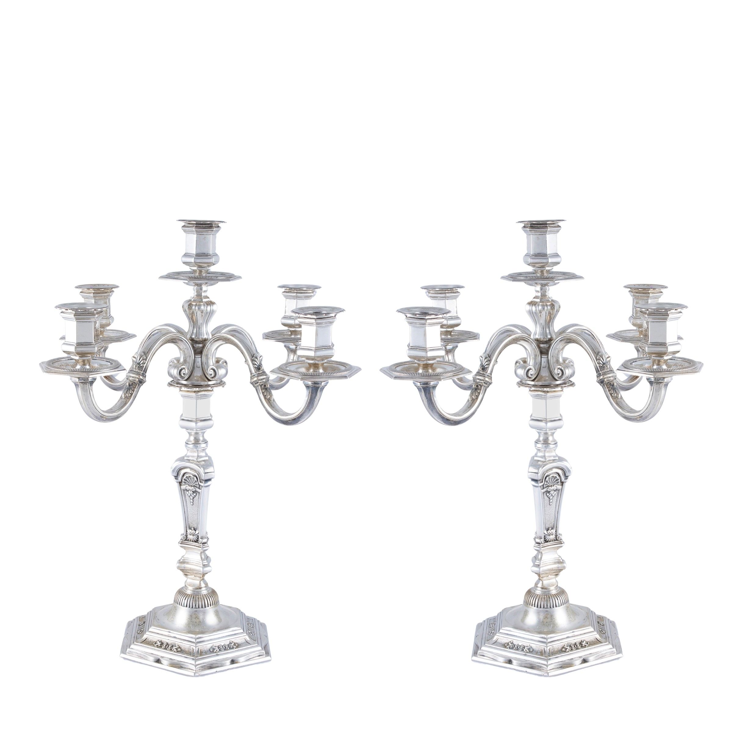 Italia, XX Sec. base ottagonale, fusto tornito con motivi vegetali e floreali, bracci di linea sagomata, peso 4603 gr.