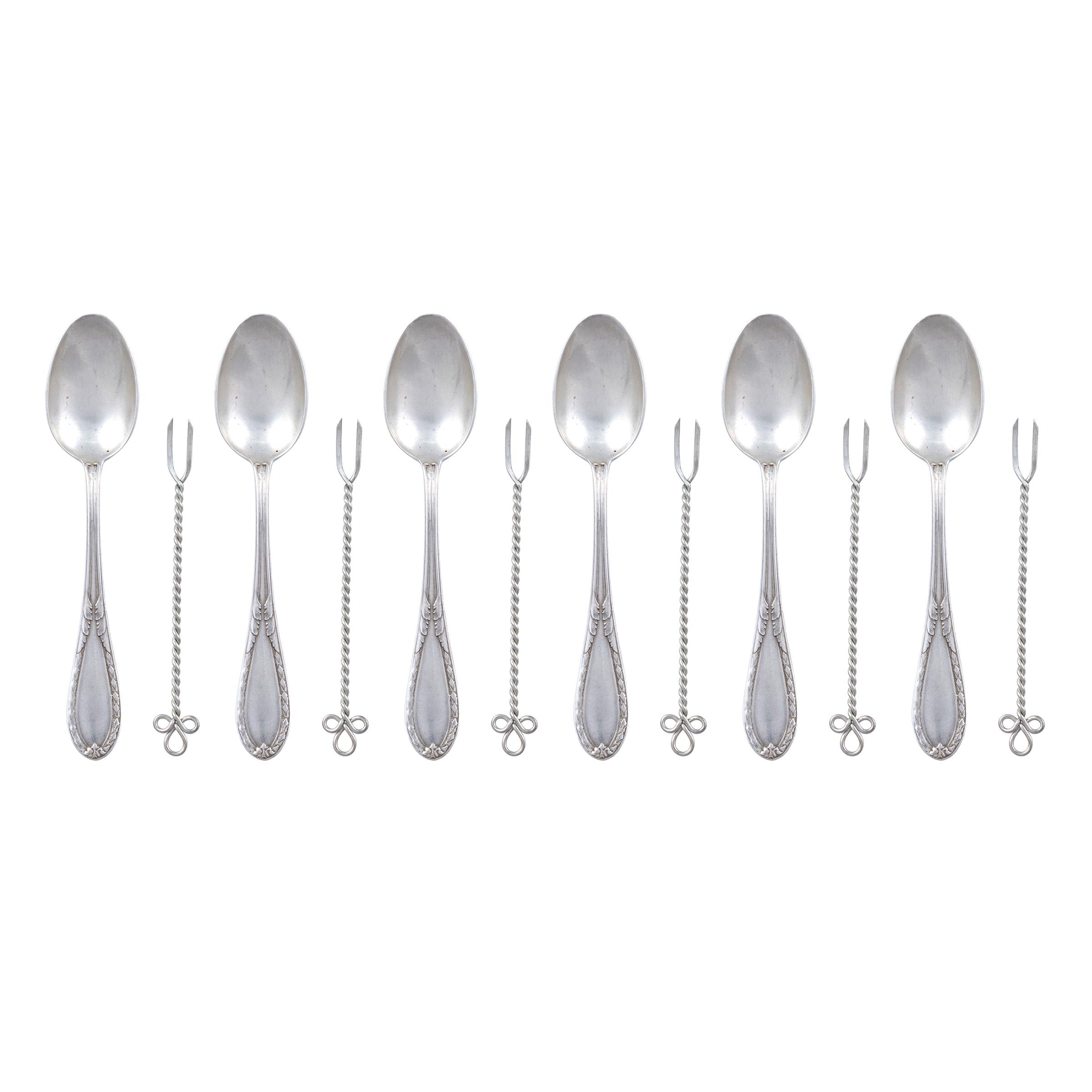 Italia, XX Sec. composto da: 12 cucchiaini da caffè in argento 12 forchettine da aperitivo