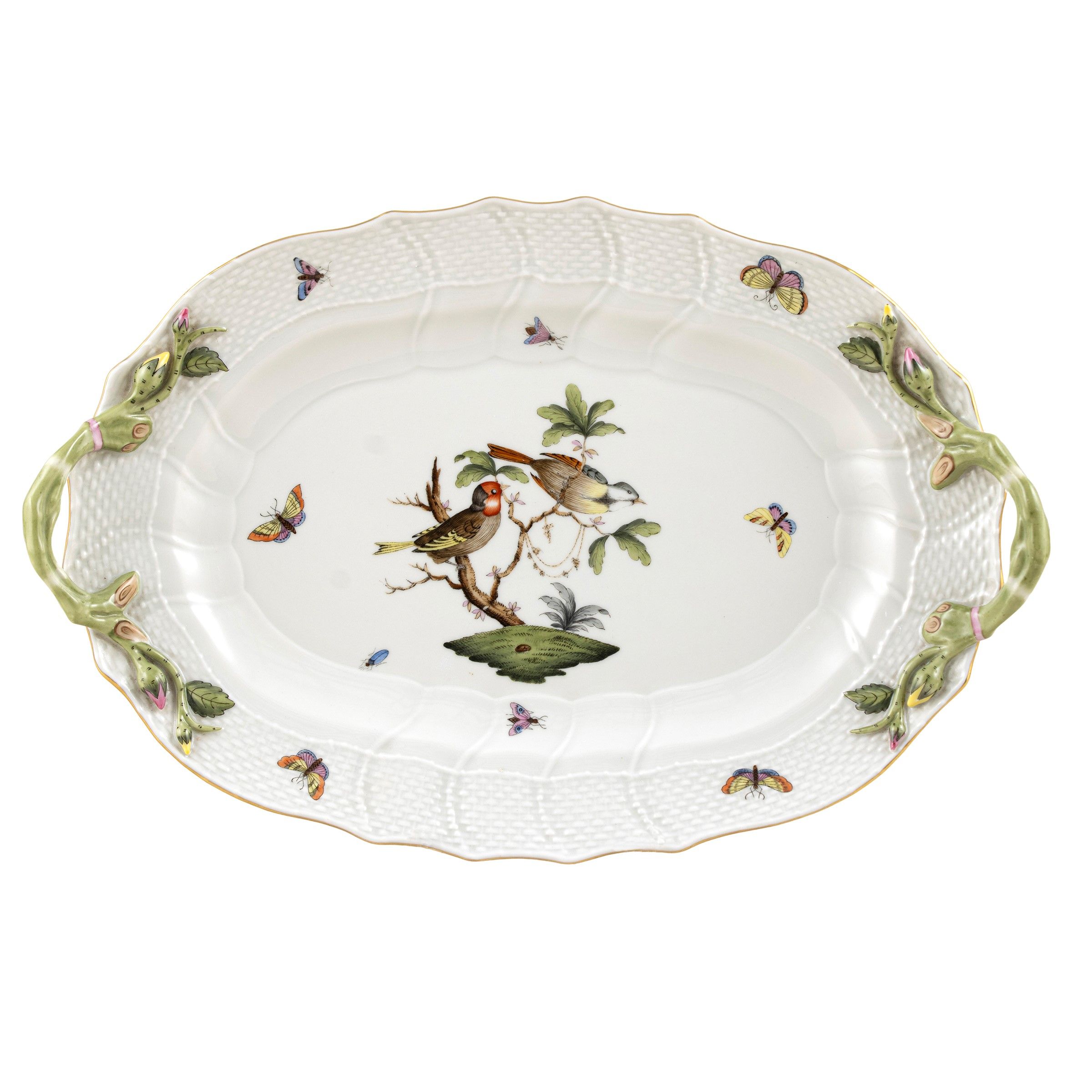 Ungheria, XX Sec. decoro 'Rothschild' in policromia su fondo bianco, bordo Ozier e profilo dorato, marchio della produzione