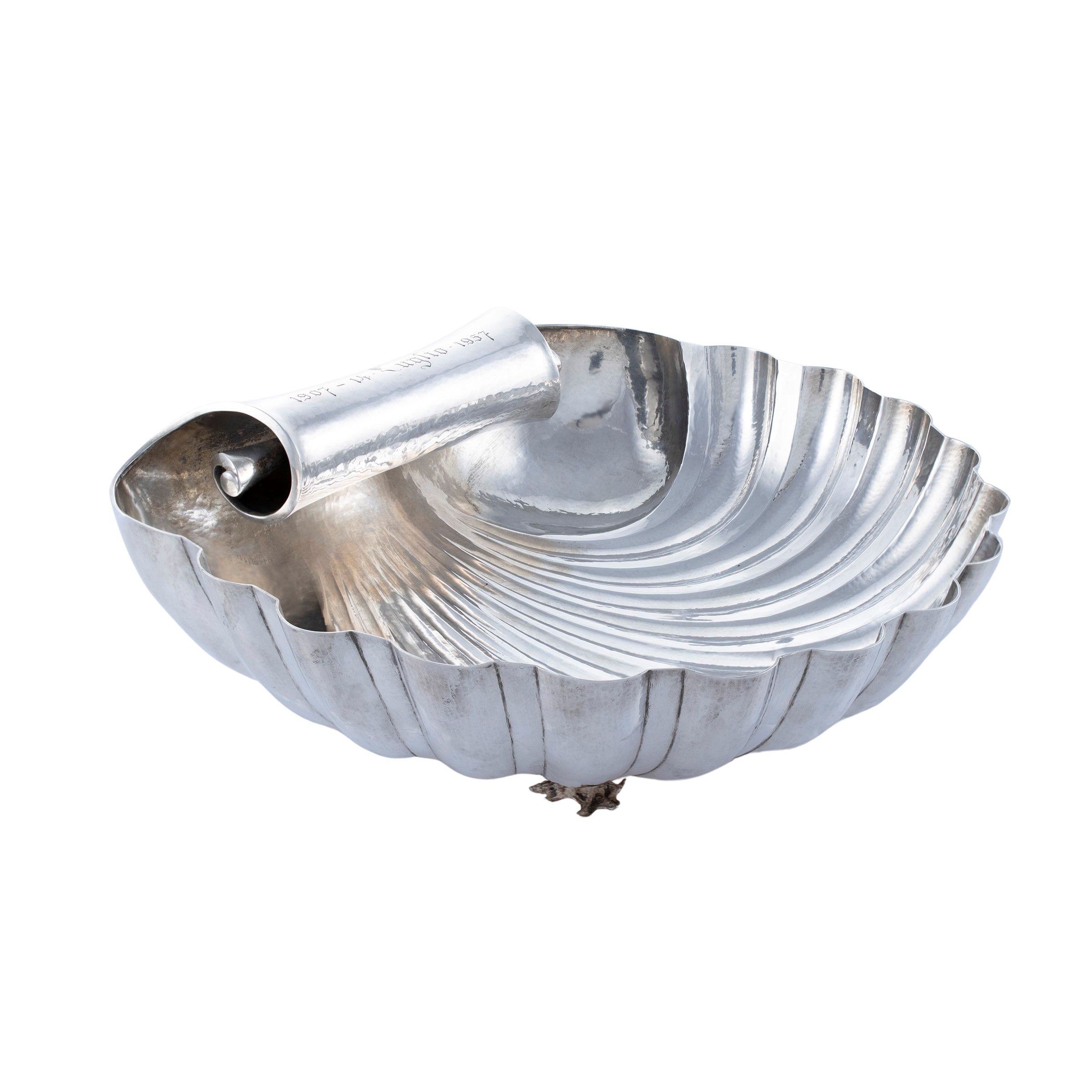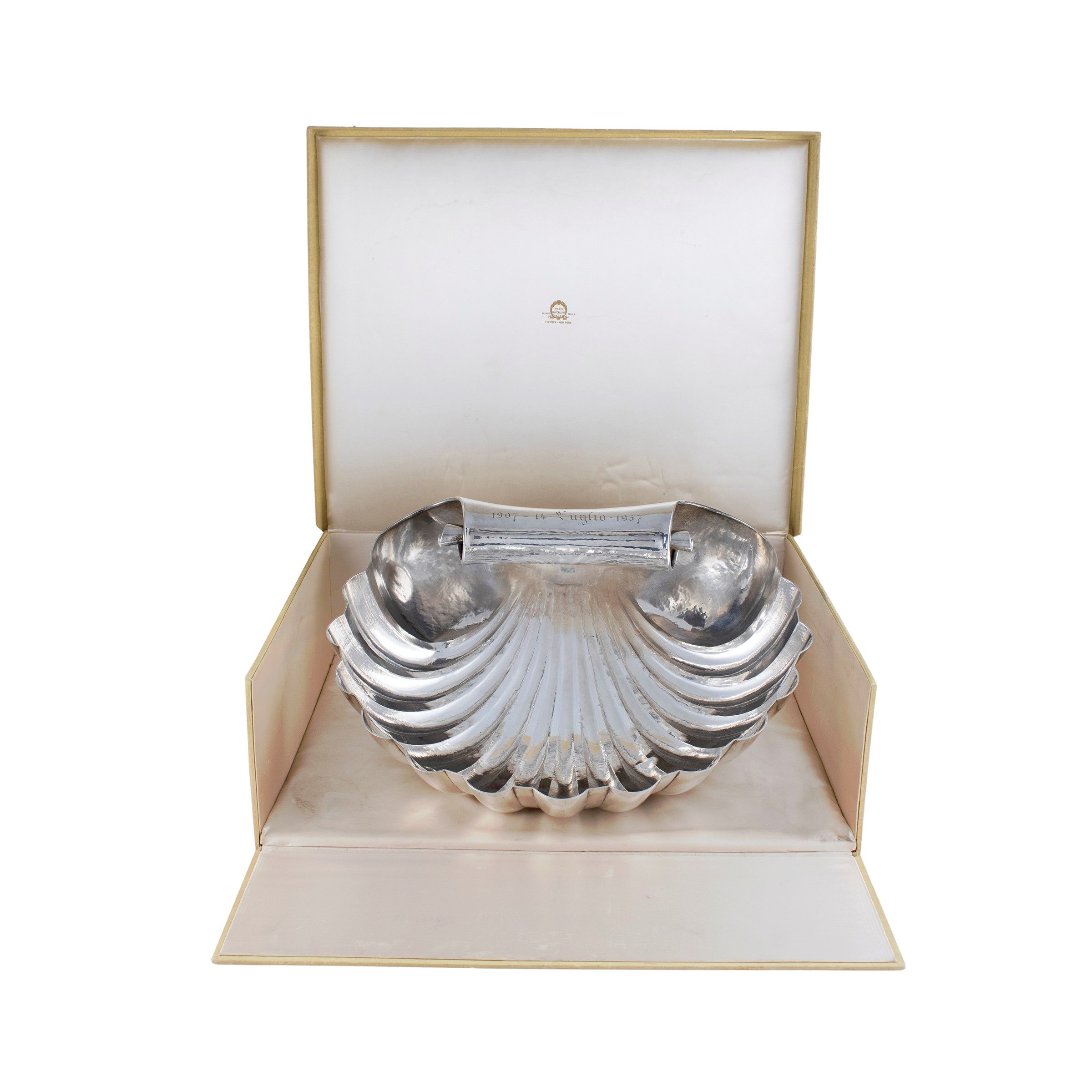 Italia, metà XX Sec. grande centrotavola a conchiglia in argento, firmato Buccellati, entro custodia originale, peso 2122 gr.