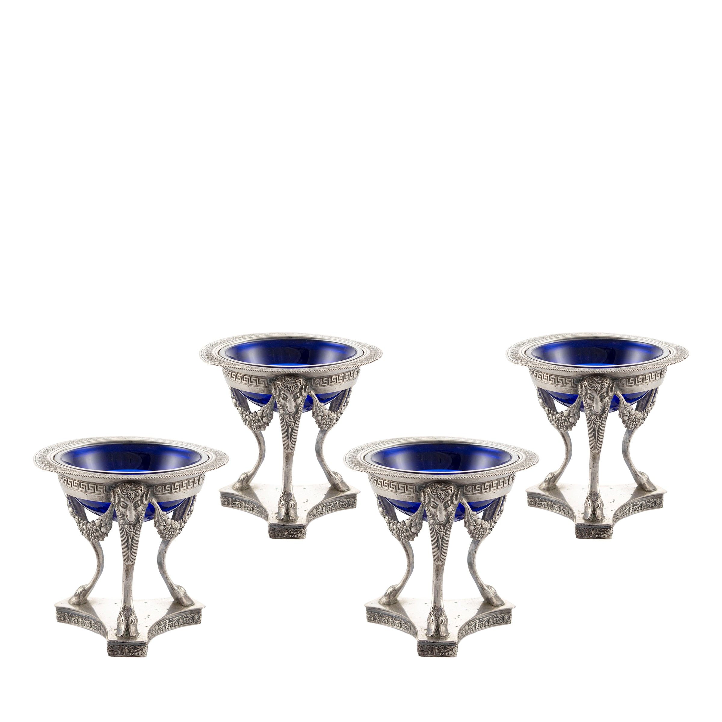 Quattro saliere in argento e vetro opalino  - Asta Argenti e l'Arte della Tavola - Associazione Nazionale - Case d'Asta italiane