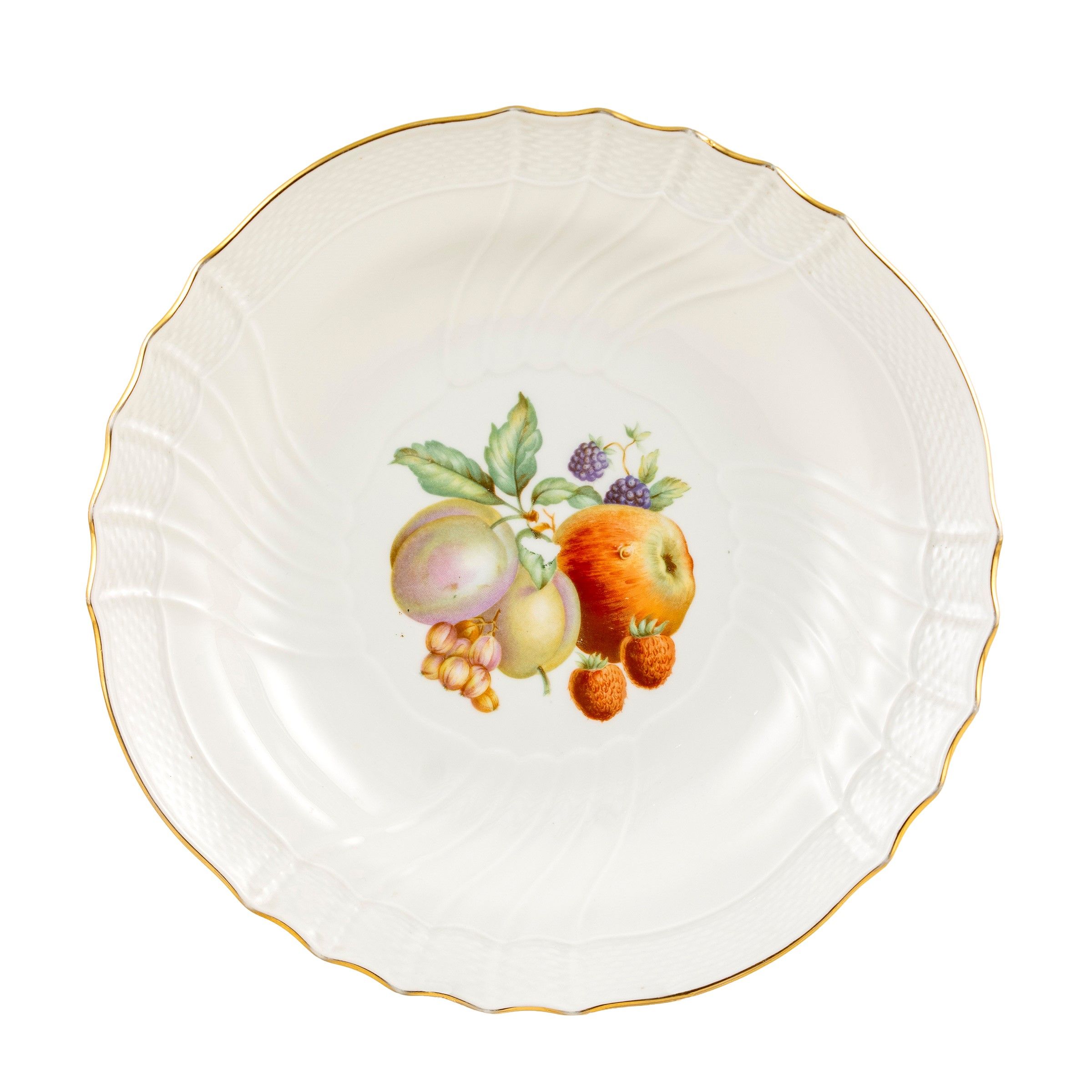 Italia, XX Sec. in porcellana decorata in policromia su fondo bianco e profilo dorato, marchio della produzione