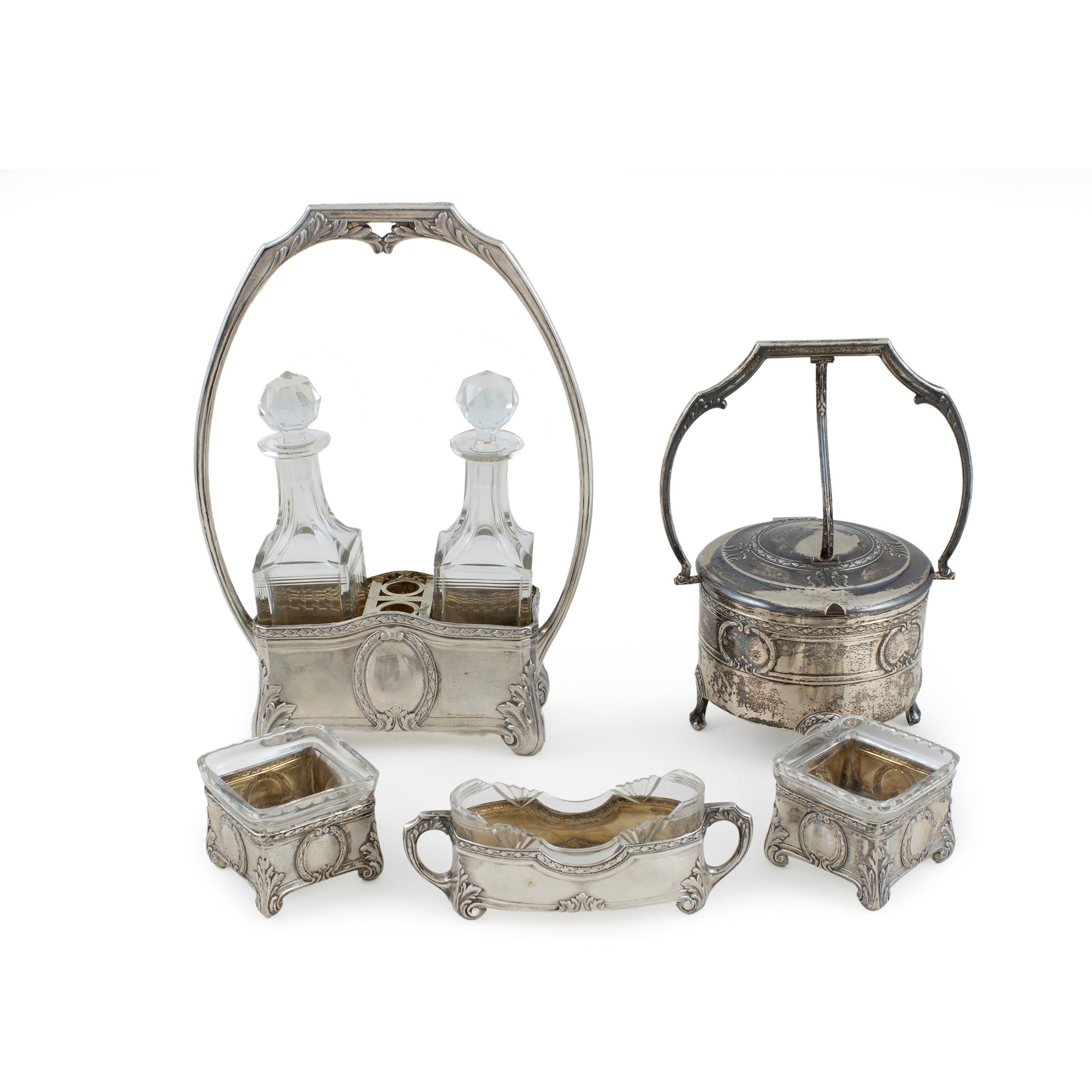 Italia, XX Sec. orafo Cesa, Alessandria, composto da: un'oliera a due ampolle in vetro una formaggiera tre saliere con cucchiaini