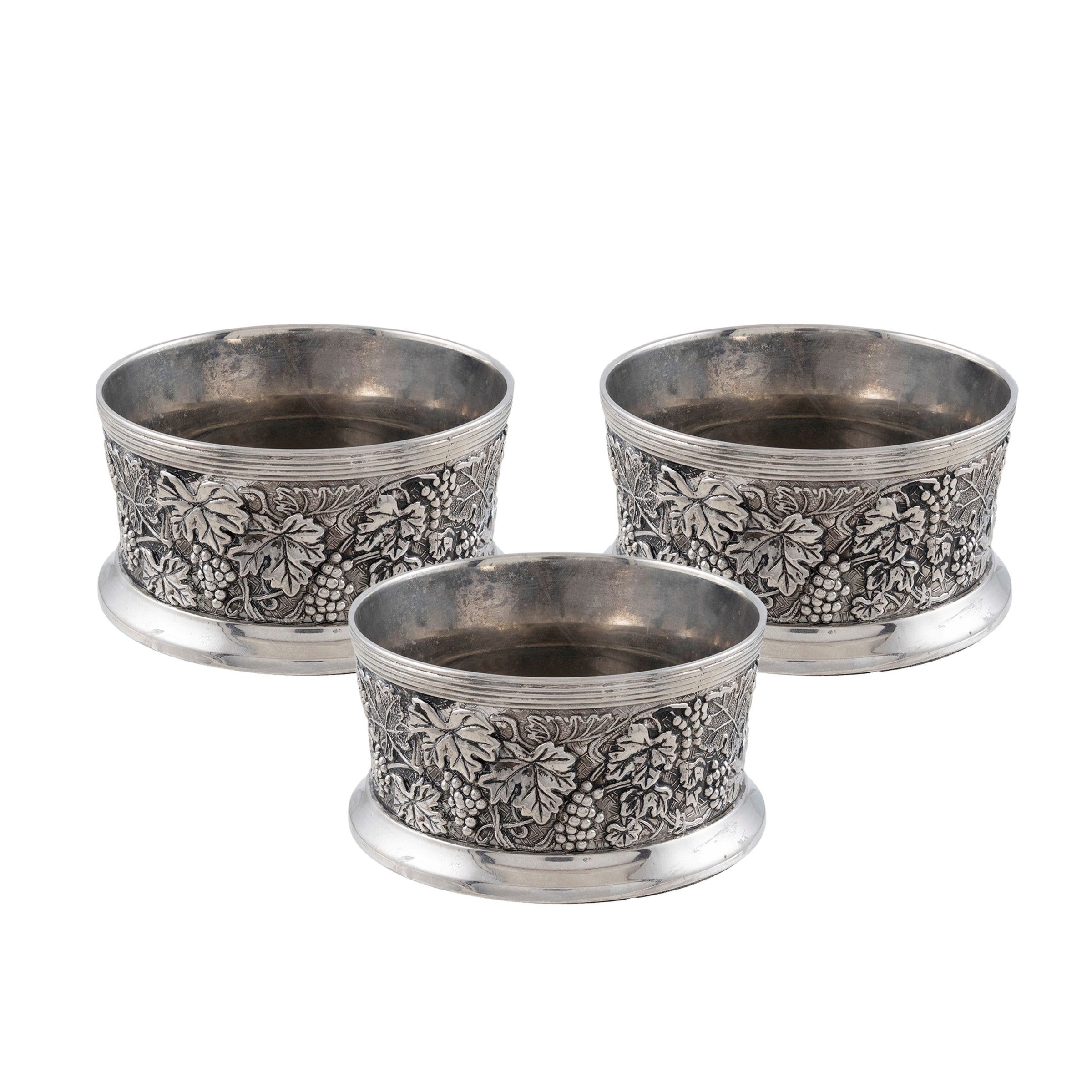 XX Sec. corpi circolari in metallo cesellato con tralci di vite, basi in resina
