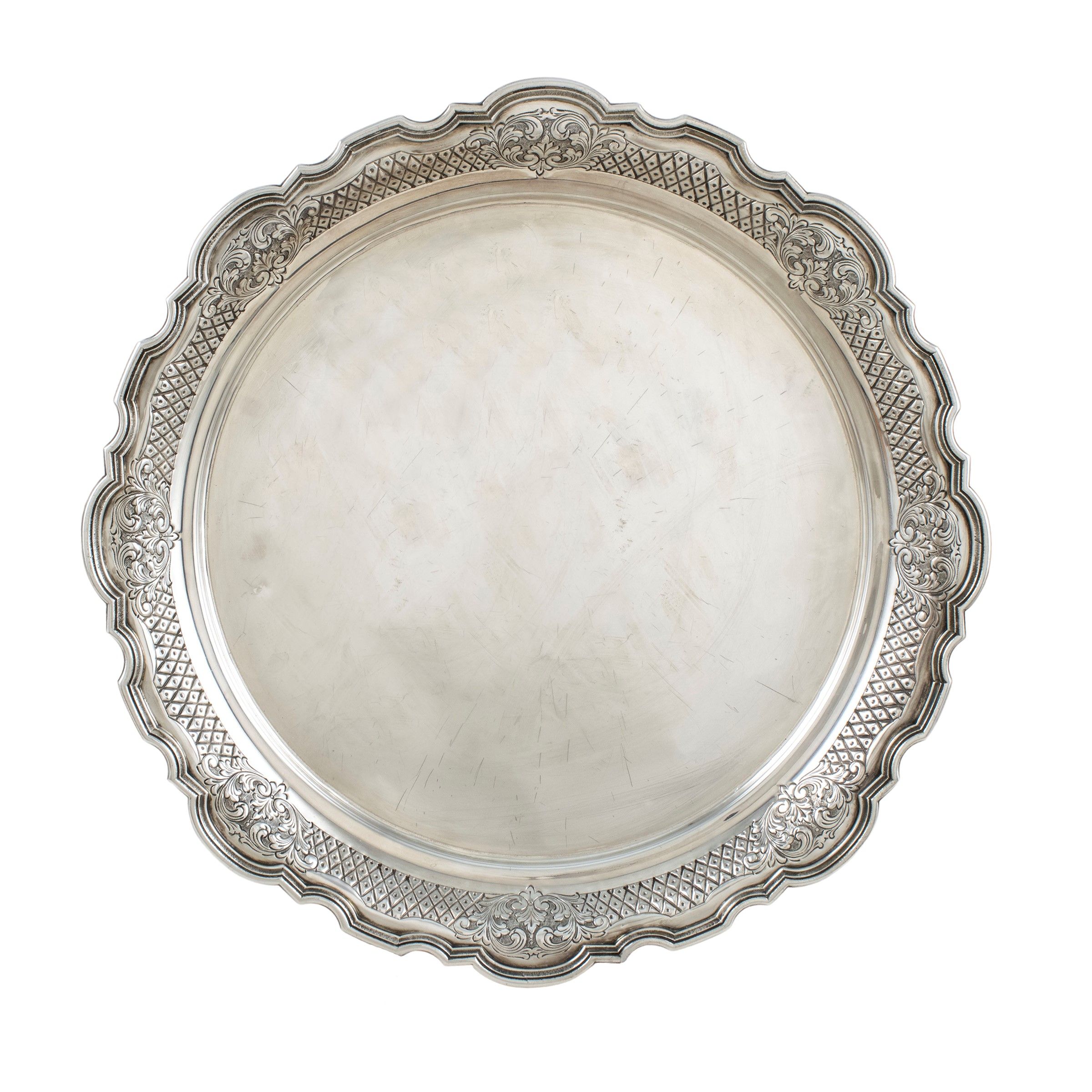 Italia, XX Sec. forma circolare con bordo di linea sagomata decorato con motivi geometrici e di volute, peso 895 gr.