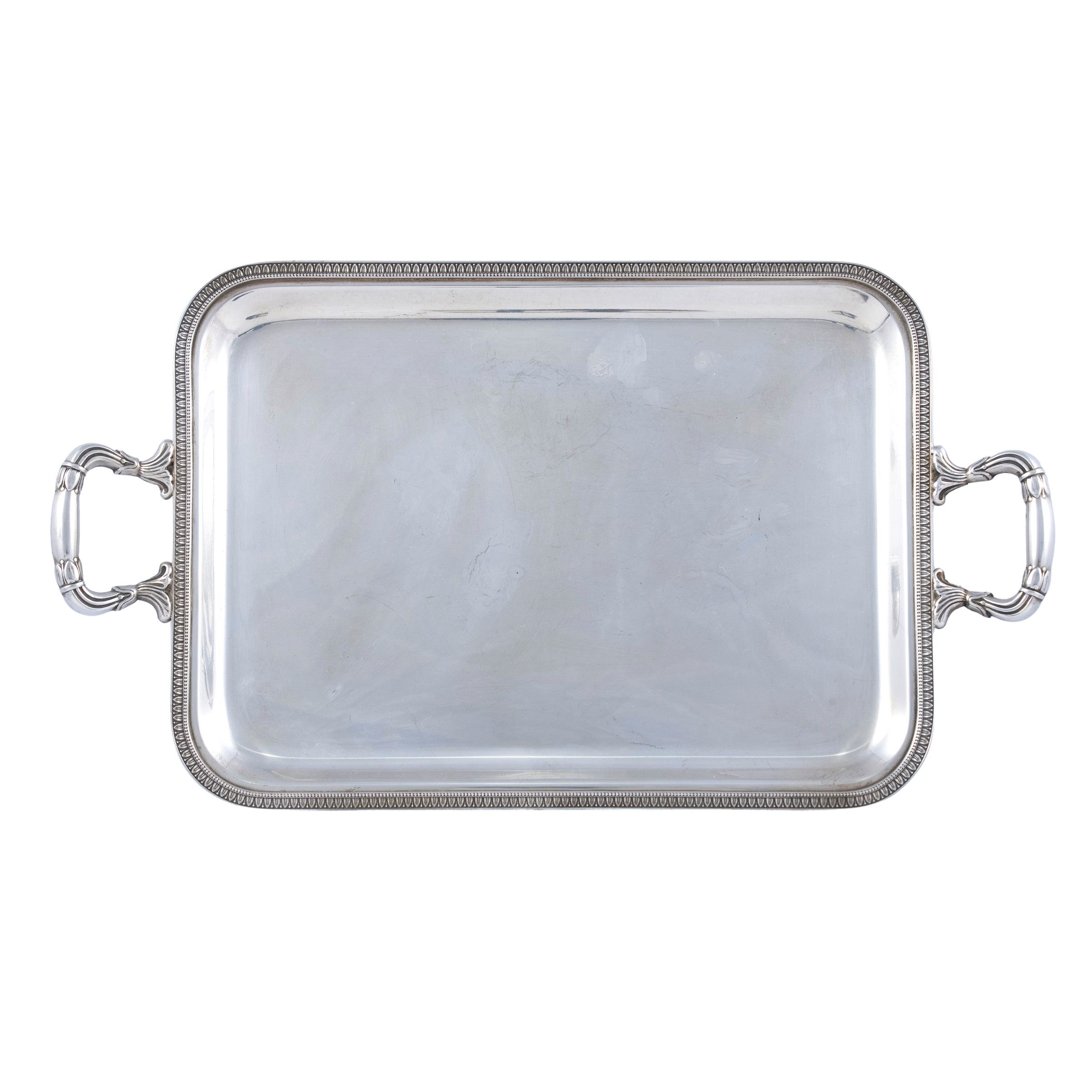 Italia, XX Sec. orafo Peruggia & co, Alessandria, corpo liscio, bordi cesellati con palmette Impero, manici a foggia vegetale, peso 472 gr.
