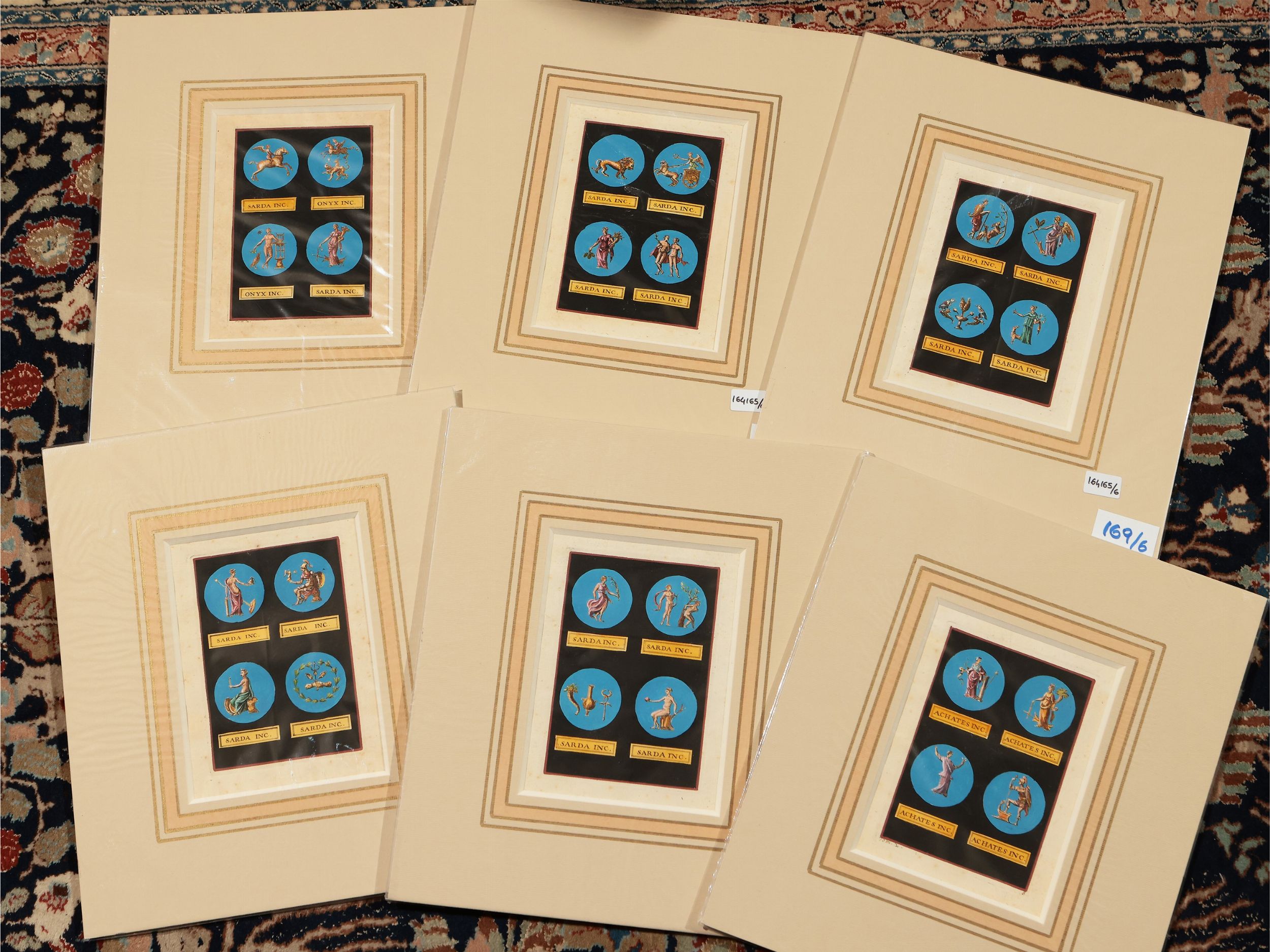 XVIII secolo sei incisioni su rame, colorate, con passe-partout, tracce di foxing