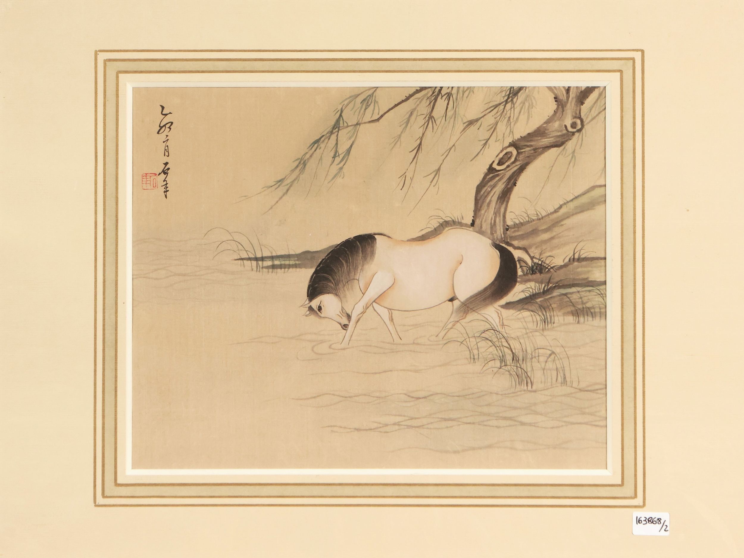 Giappone, Inizio del XX secolo due dipinti su seta, con passe-partout