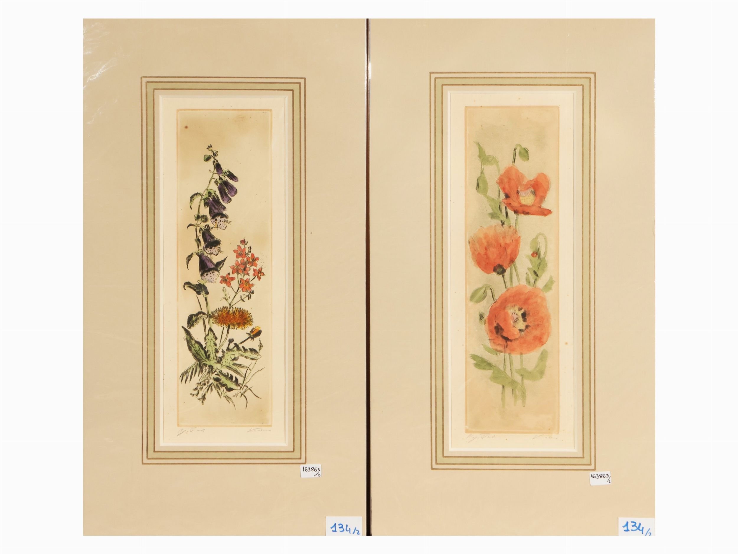 Cina, Inizio del XX secolo due incisioni su rame acquerellate, con passe-partout