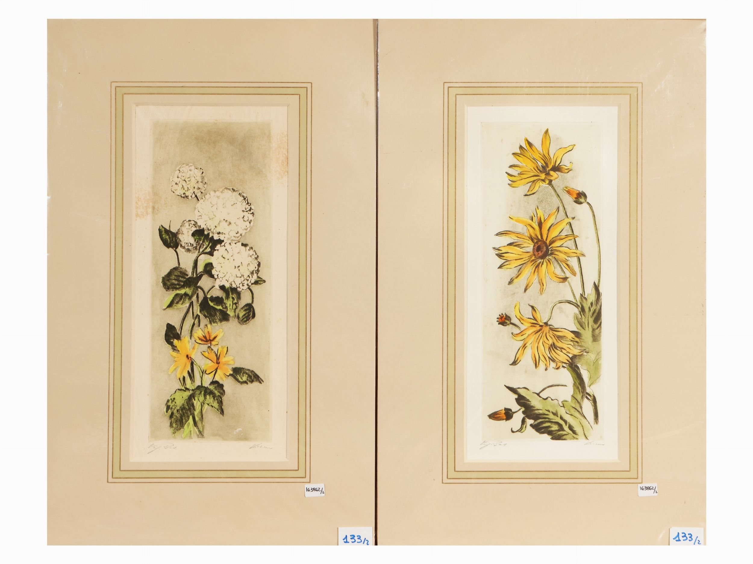 Cina, Inizio del XX secolo due incisioni su rame acquerellate, con passe-partout