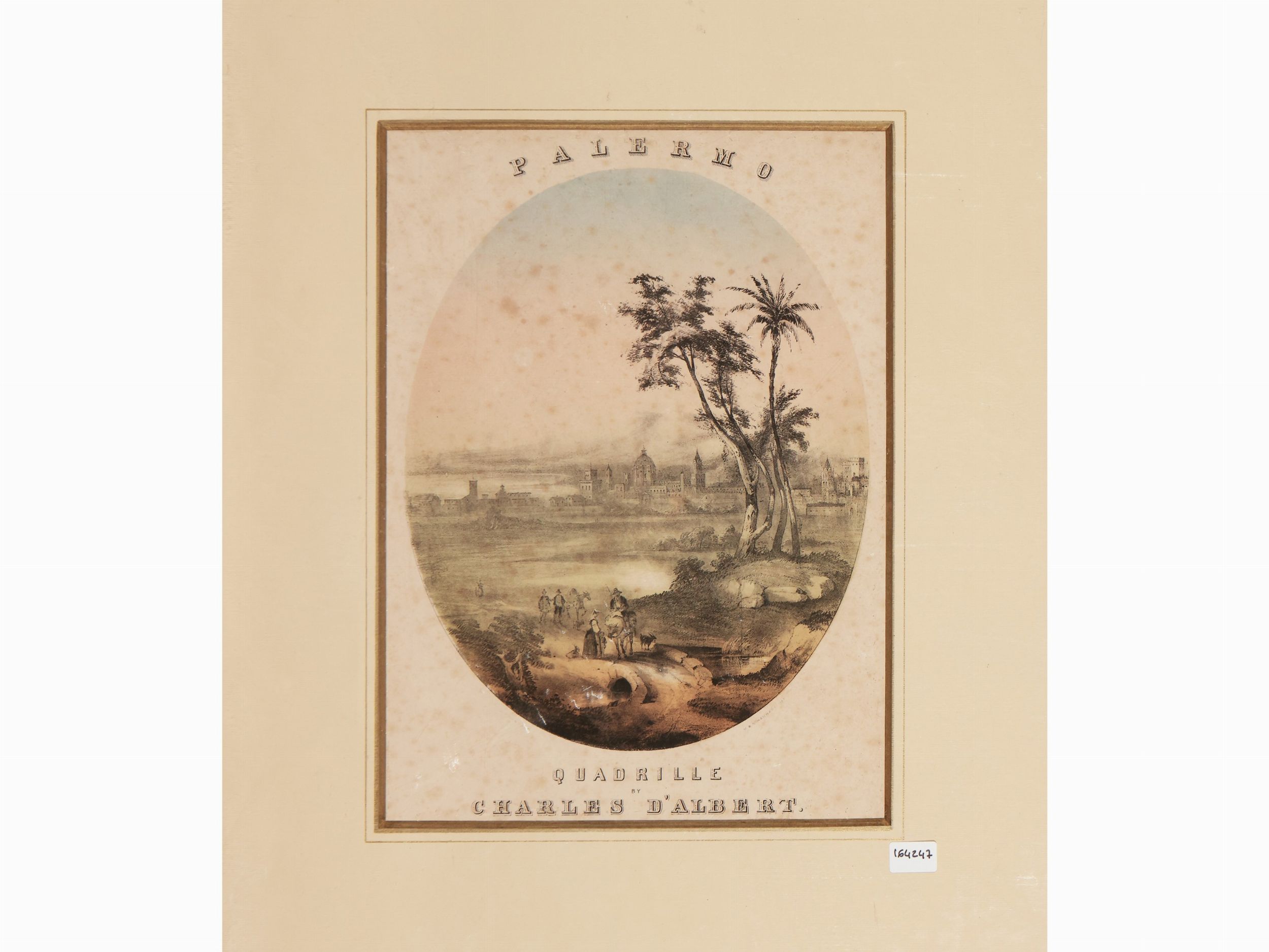 XIX secolo litografia, con passe-partout, tracce di foxing