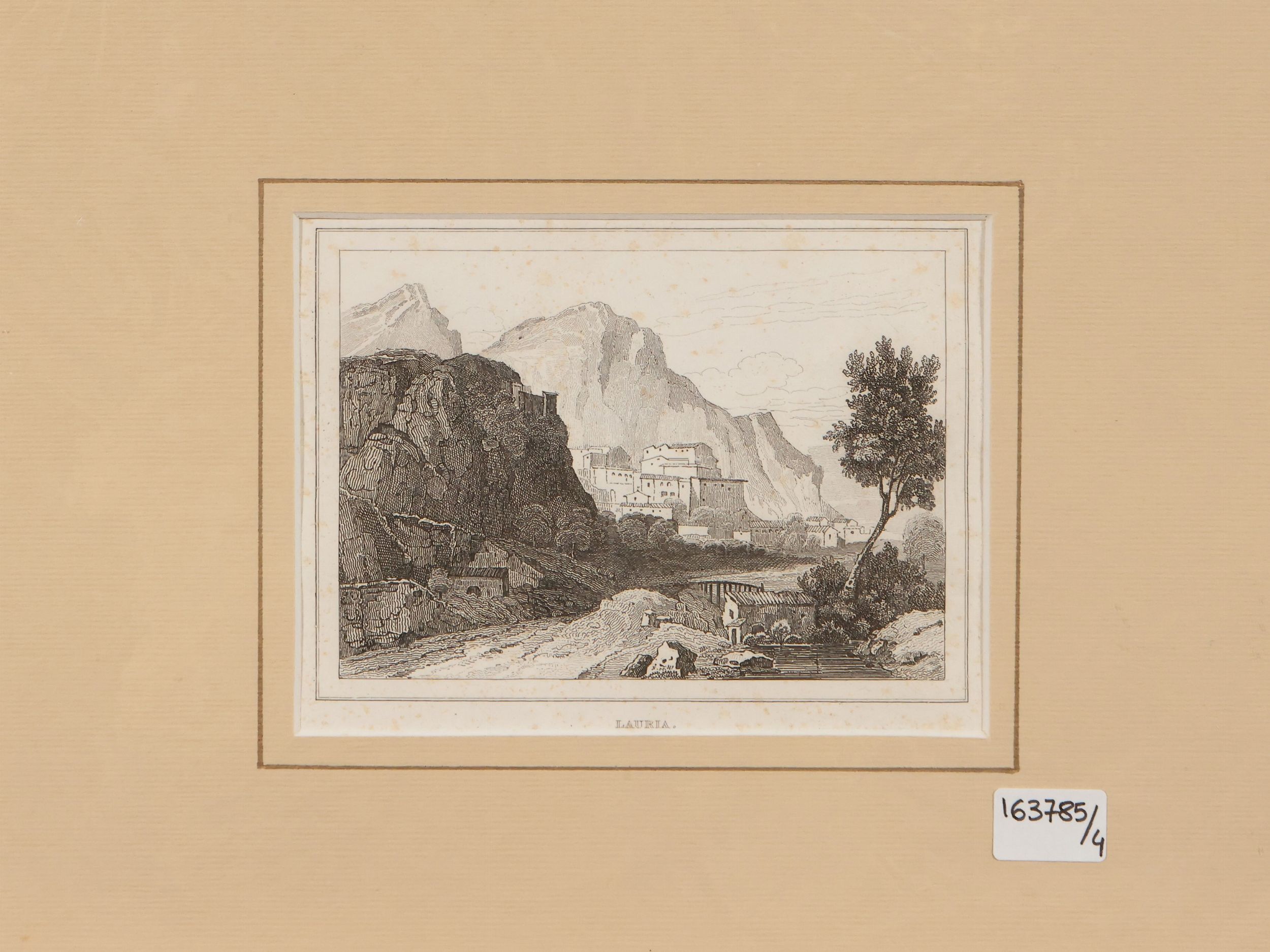 XIX secolo quattro incisioni su acciaio, con passe-partout, tracce di foxing
