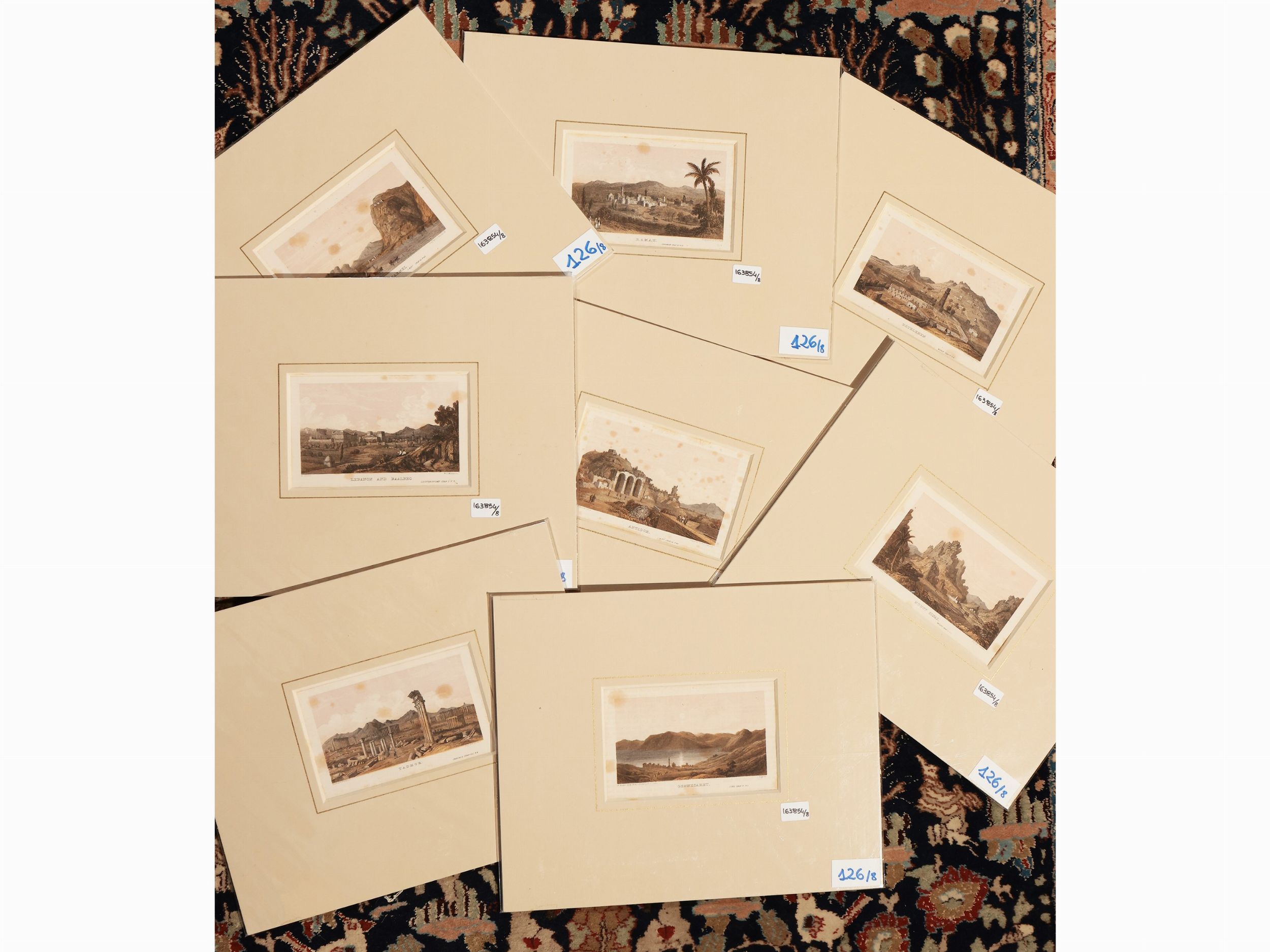 Inizio del XIX secolo otto litografie, con passe-partout, tracce di foxing