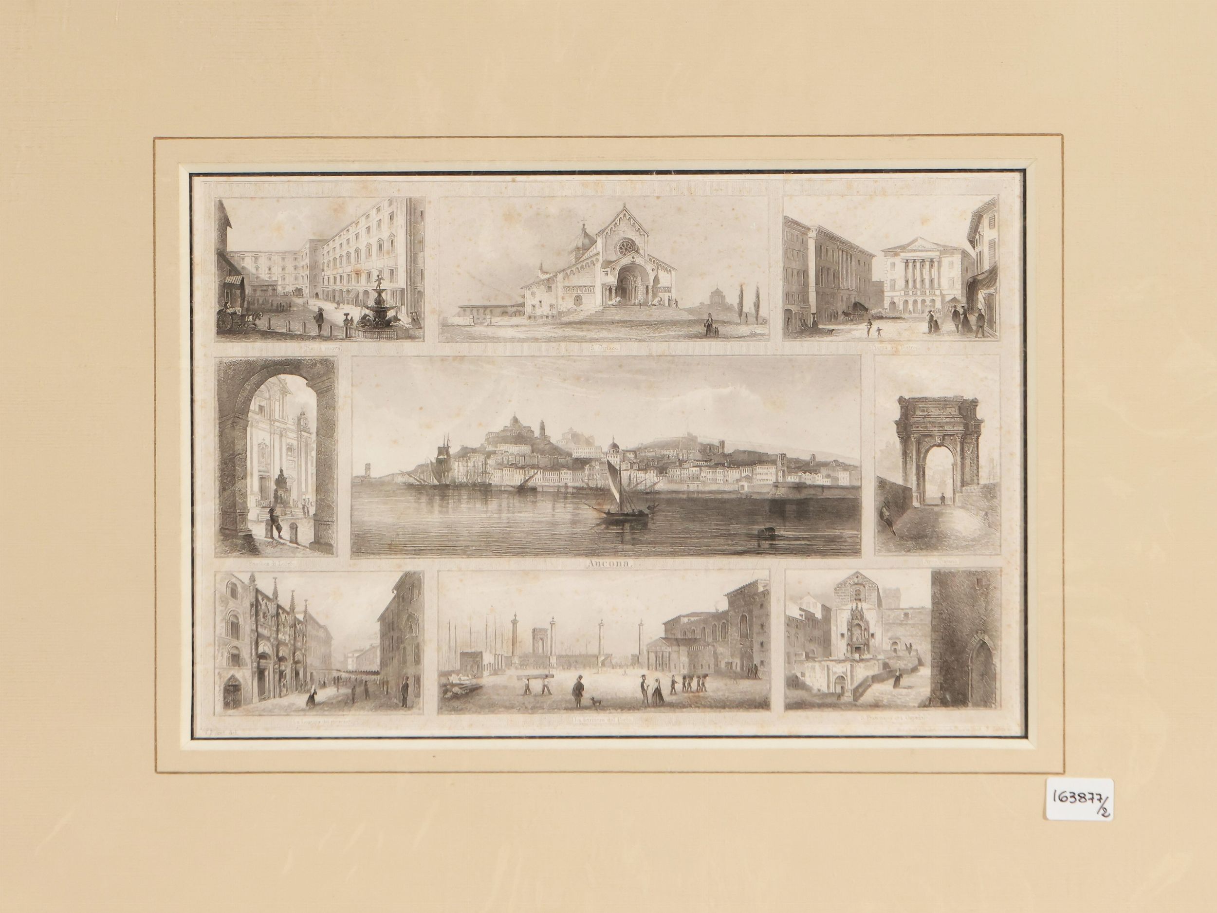 XIX/XX secolo una incisione su acciaio e una litografia, entrambe con passe-partout, tracce di foxing