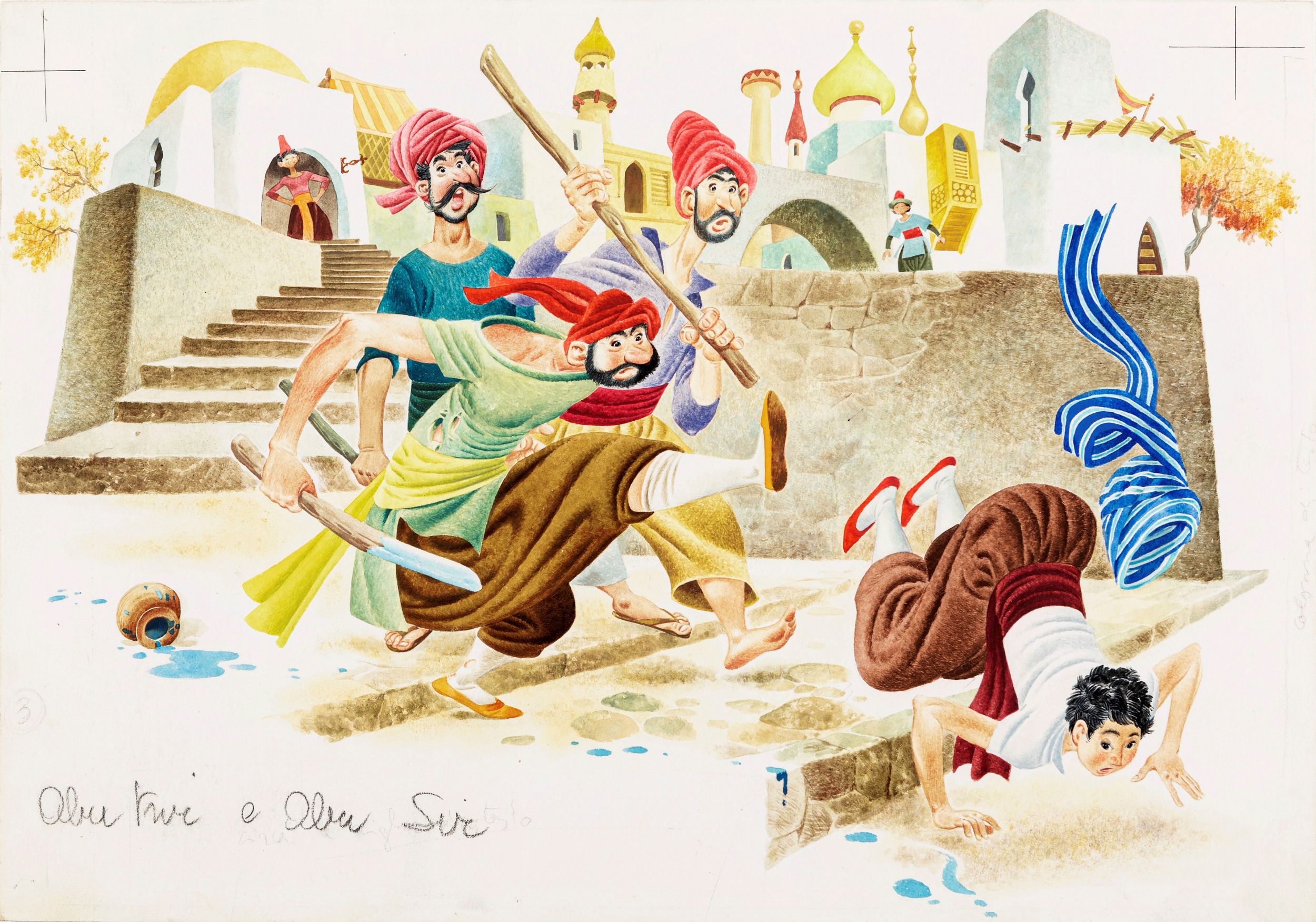 1968 Illustrazione originale realizzata da Lupatelli per la fiaba 'Abu Kir e Abu Sir' edita nel 1968.