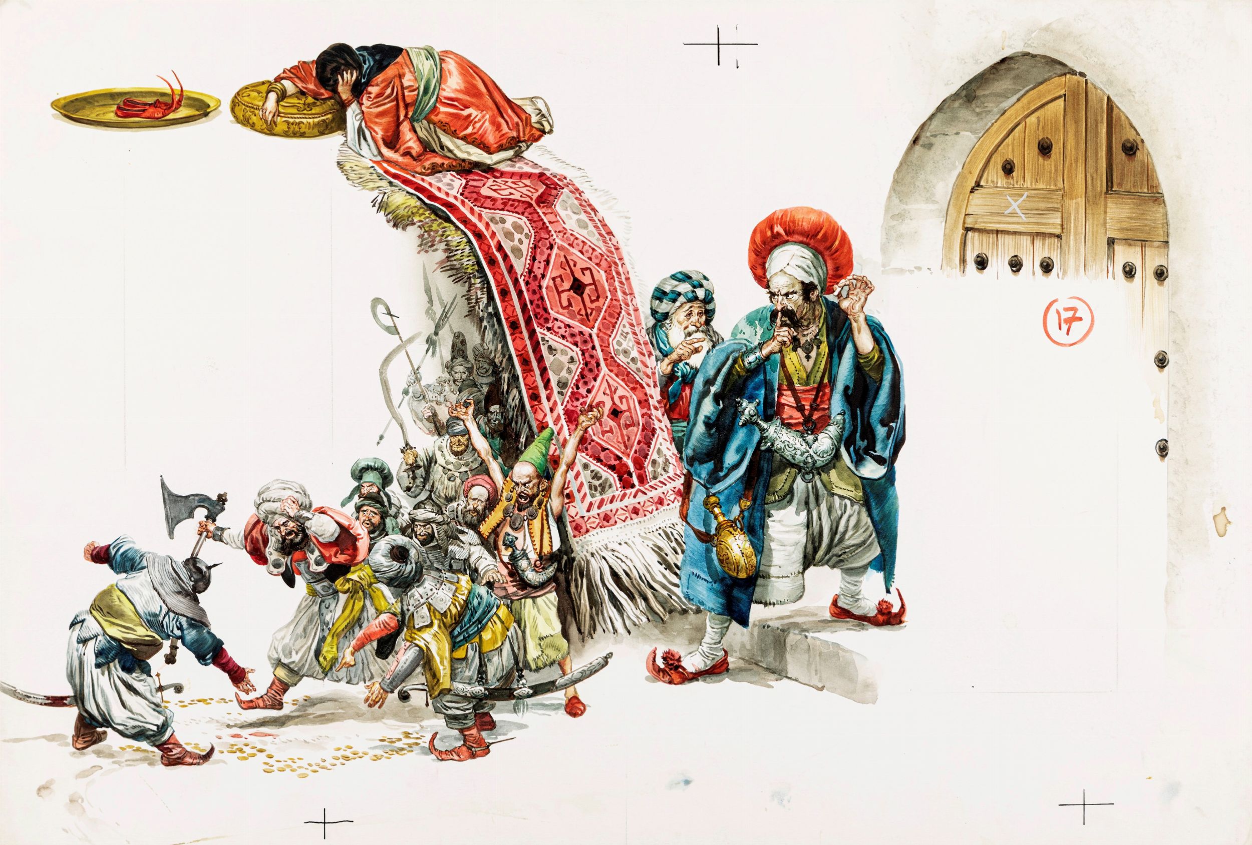 1966 Illustrazione originale realizzata da Ferri per la fiaba 'Aĺ Babà e i quaranta ladroni' edita nel 1966.