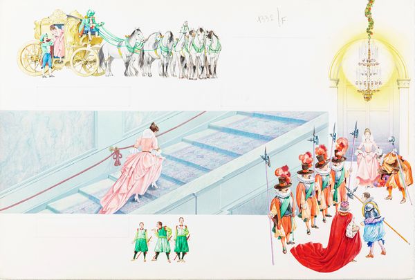 1965 Illustrazione originale realizzata da Pikka per la fiaba 'Cenerentola' edita nel 1965.