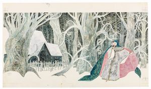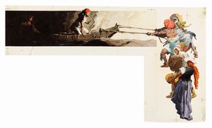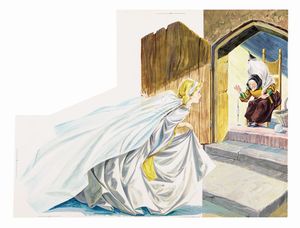 tempera su cartone sagomato, 43,5 x 28,5 cm 1964 Illustrazione originale realizzata da Gatti per la fiaba 'Cenerentola' [..]