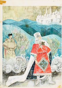 tempera su cartone, 50 x 34 cm 1964 Illustrazione originale realizzata da Gatti per la fiaba 'L'acciarino magico' [..]