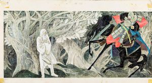 tempera su cartone, 46,5 x 20,5 cm 1960 Illustrazione originale realizzata da Santin per la fiaba 'La bella addormentata [..]