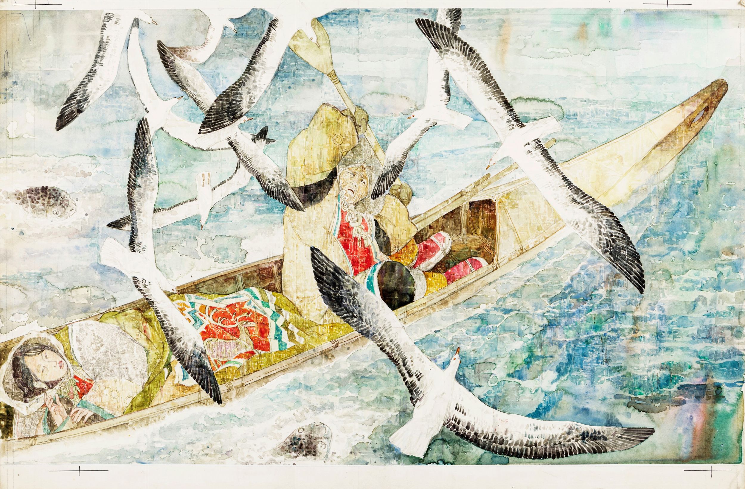 1966 Illustrazione originale realizzata da Benvenuti per le 'Fiabe eschimesi' edita nel 1966. Lievi pieghe agli angoli.