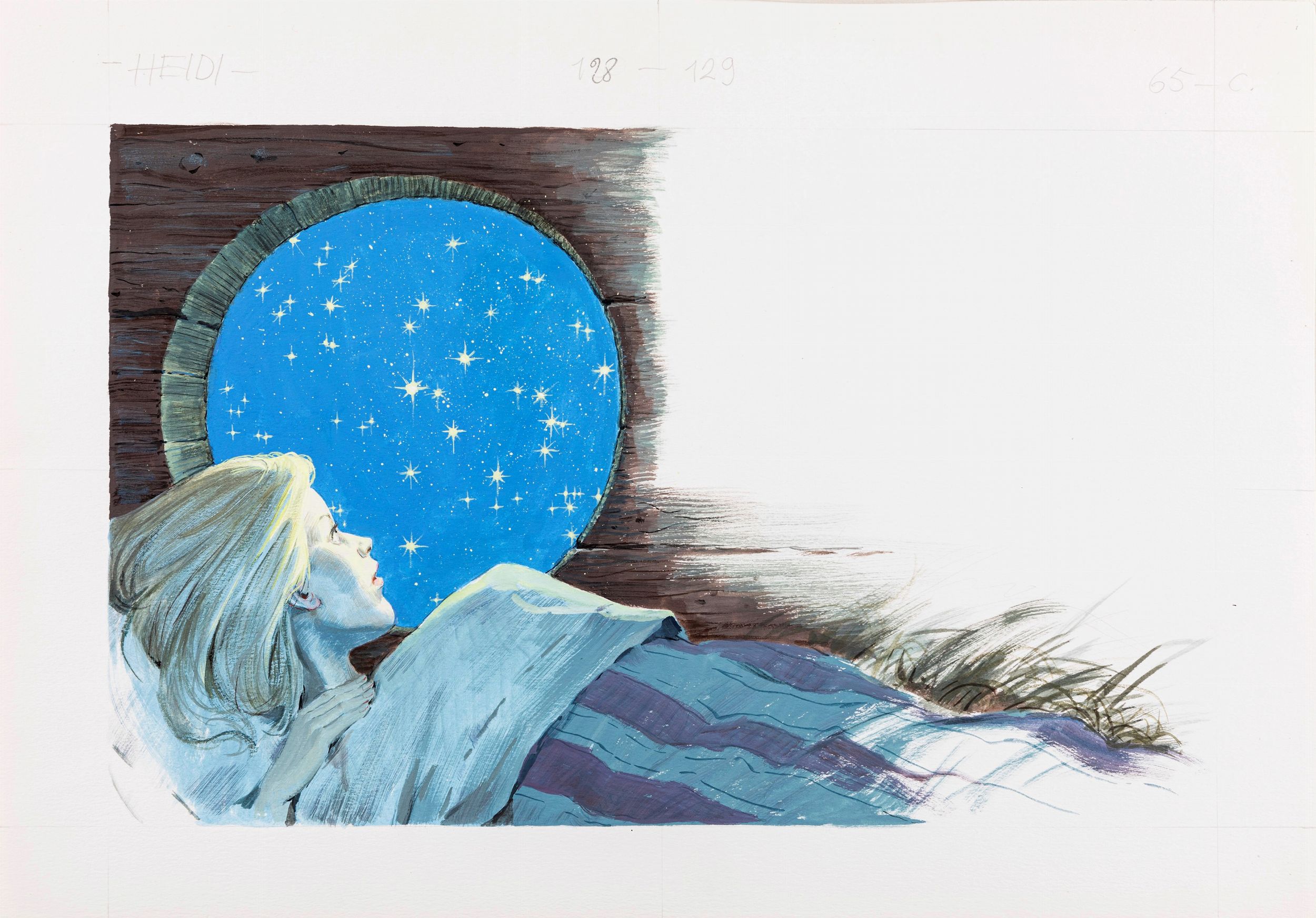 1985 Illustrazione originale realizzata da Maraja per il romanzo 'Heidi' di Johanna Spyri edito nel 1985.