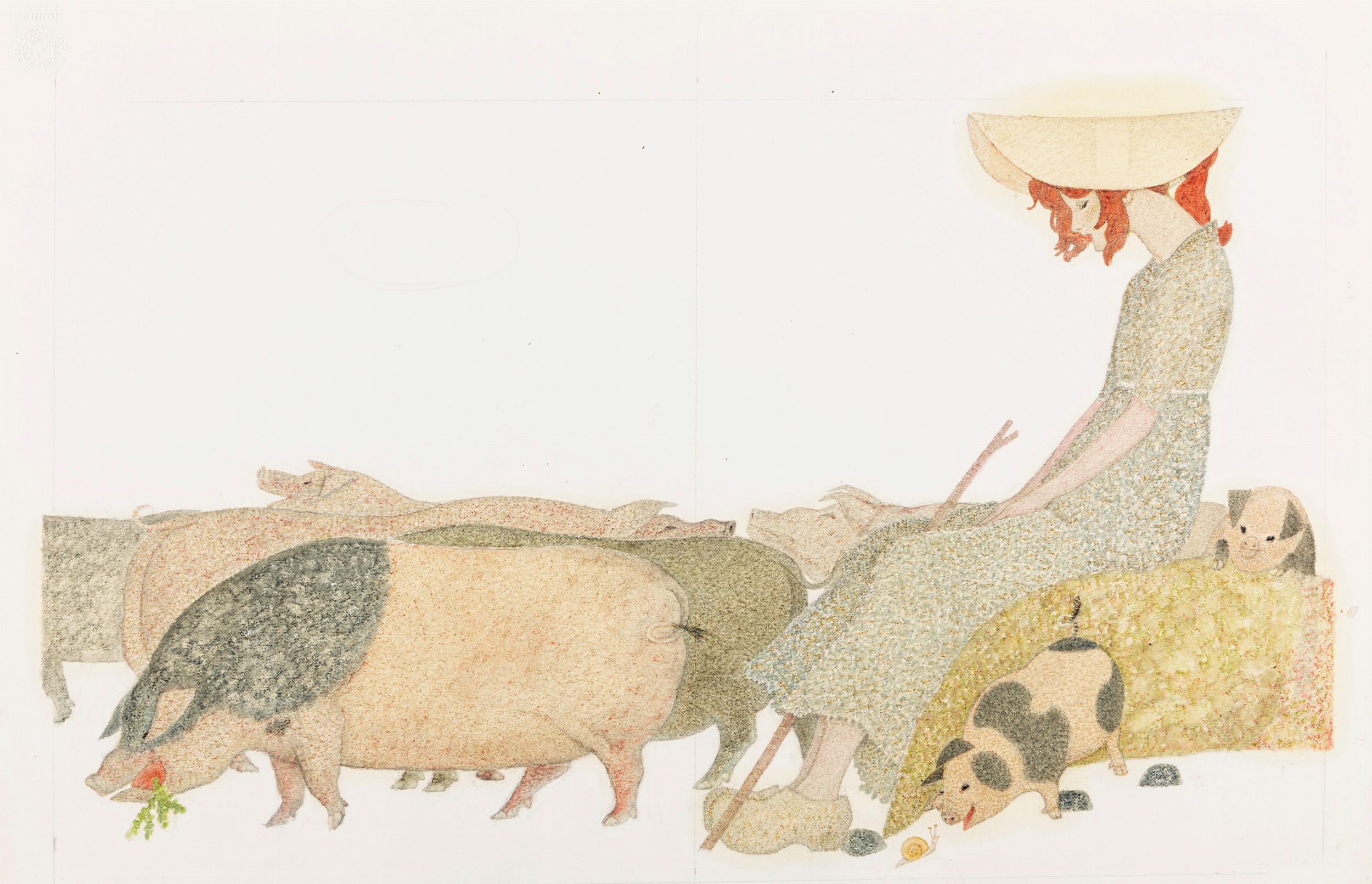 1982 Illustrazione originale realizzata da Fontana per la fiaba 'I sei servitori' edita nel 1982.