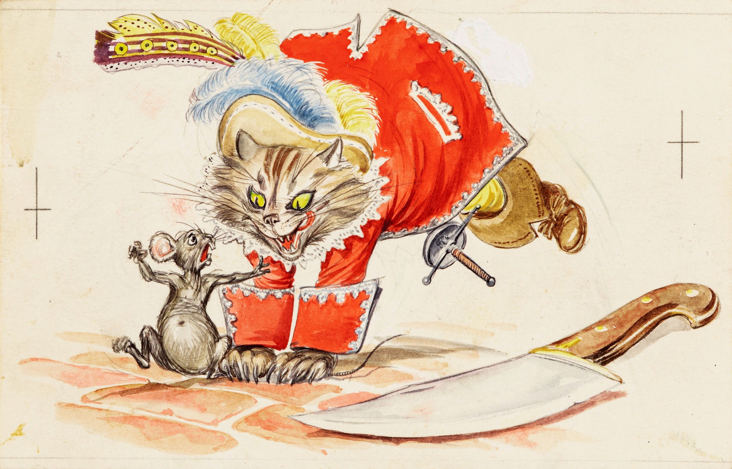1954 Illustrazione originale realizzata da Benvenuti per la fiaba 'Il gatto con gli stivali' edita nel 1954.
