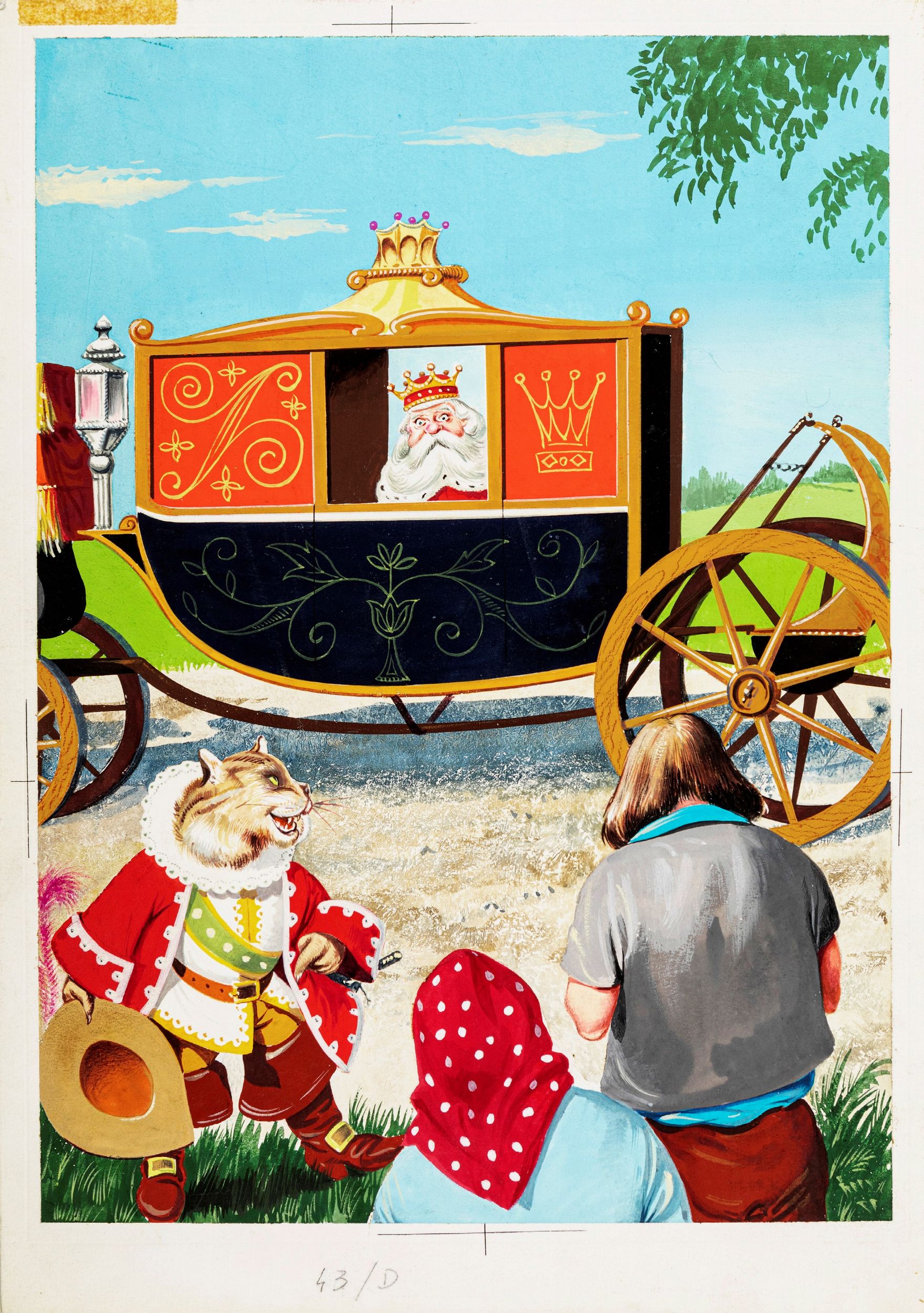 1960 Illustrazione originale realizzata da Santin per la fiaba 'Il gatto con gli stivali' edita nel 1960.