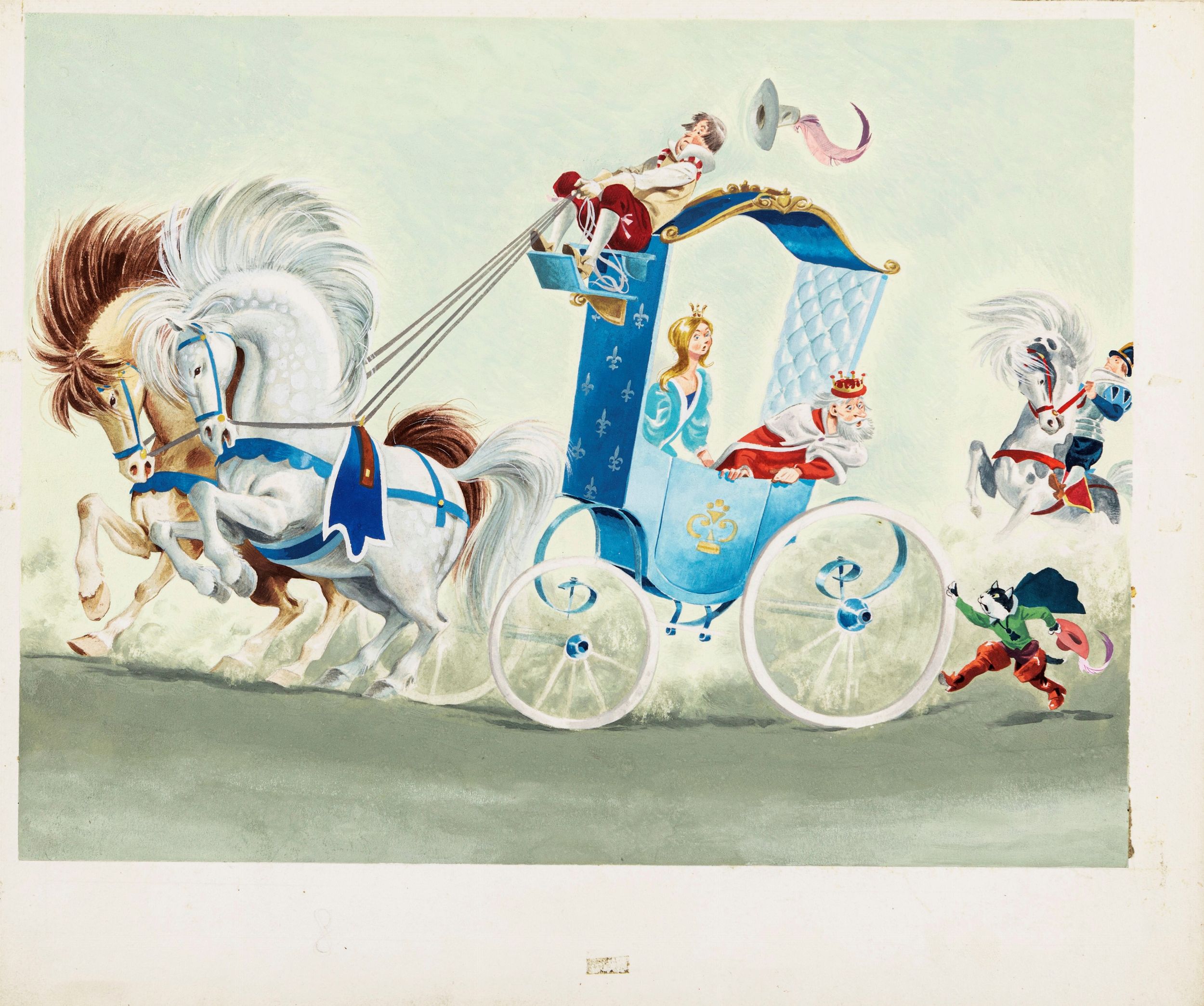 1973 Illustrazione originale realizzata da Lupatelli per la fiaba 'Il gatto dagli stivali' edita nel 1973.