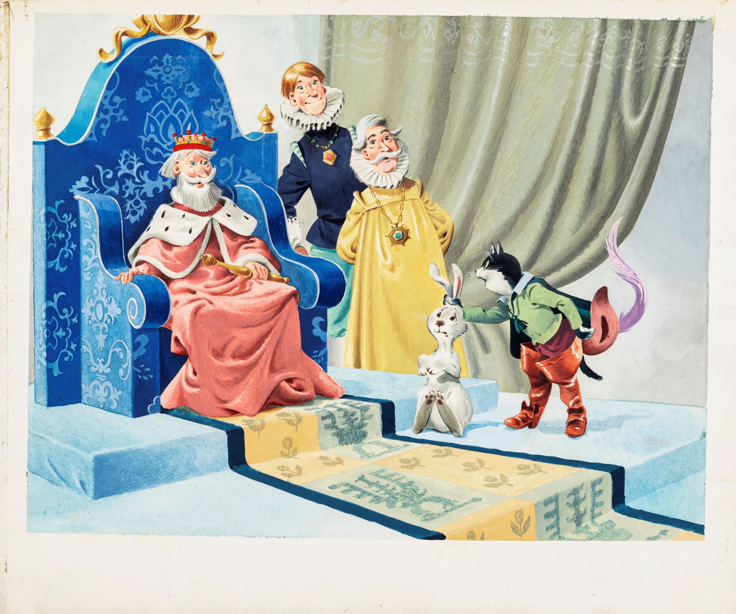1973 Illustrazione originale realizzata da Lupatelli per la fiaba 'Il gatto dagli stivali' edita nel 1973.