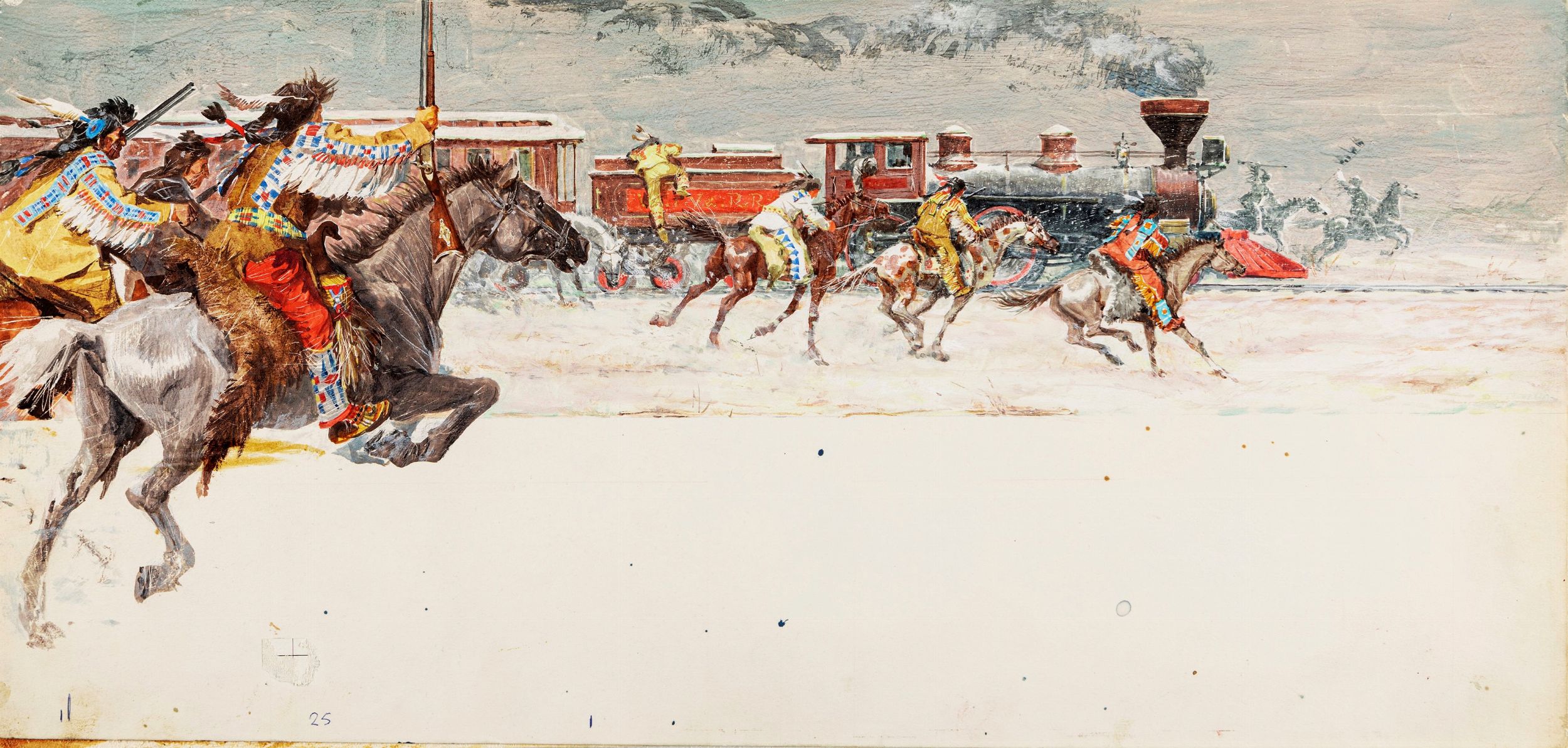 1961 Illustrazione originale realizzata da Maraja per il romanzo 'Il Giro del Mondo in 80 giorni' di Jules Verne edito nel 1961.