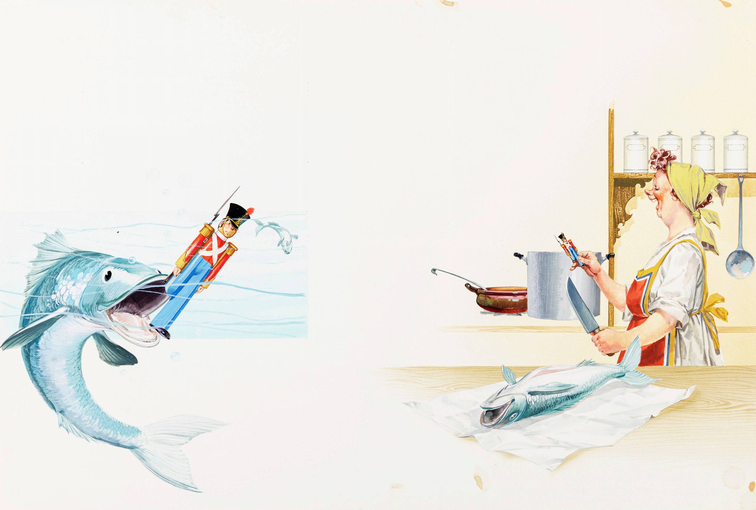 1966 Illustrazione originale realizzata da Pikka per la fiaba 'Il soldatino di piombo' edita nel 1966.