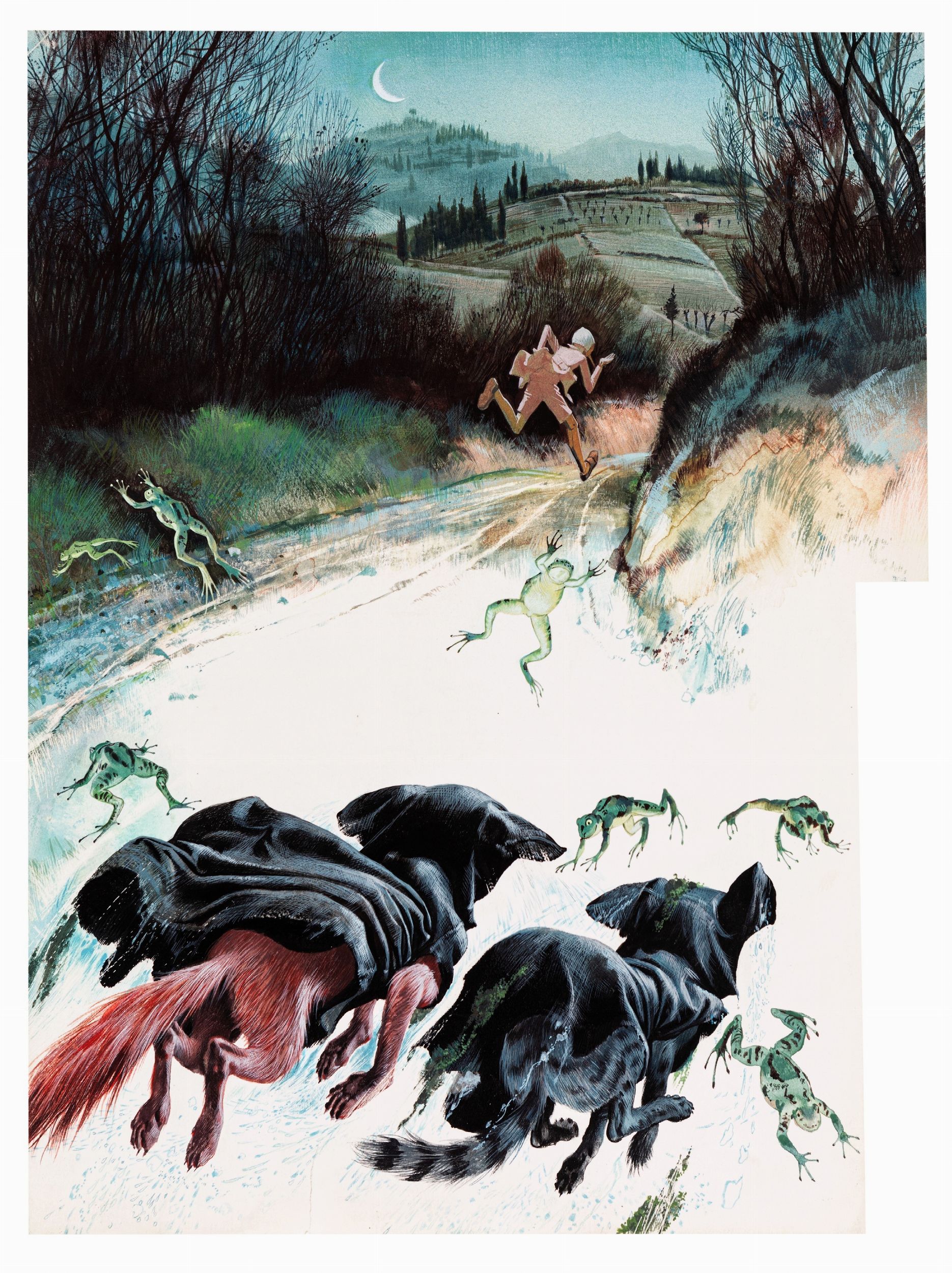 anni 60 Illustrazione originale realizzata da Sergio per la sua celebre interpretazione de 'Le avventure di Pinocchio' di Carlo Collodi, edita tra il 1961 e il 1965. Piccolo strappo al margine inferiore.