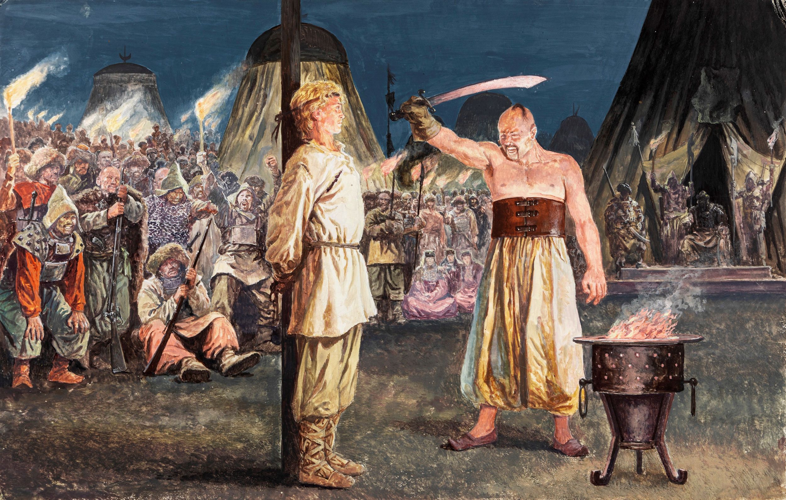 1965 Illustrazione originale realizzata da Benvenuti per il romanzo 'Michele Strogoff' di Jules Verne edito nel 1965. Lieve piega all'angolo superiore destro.