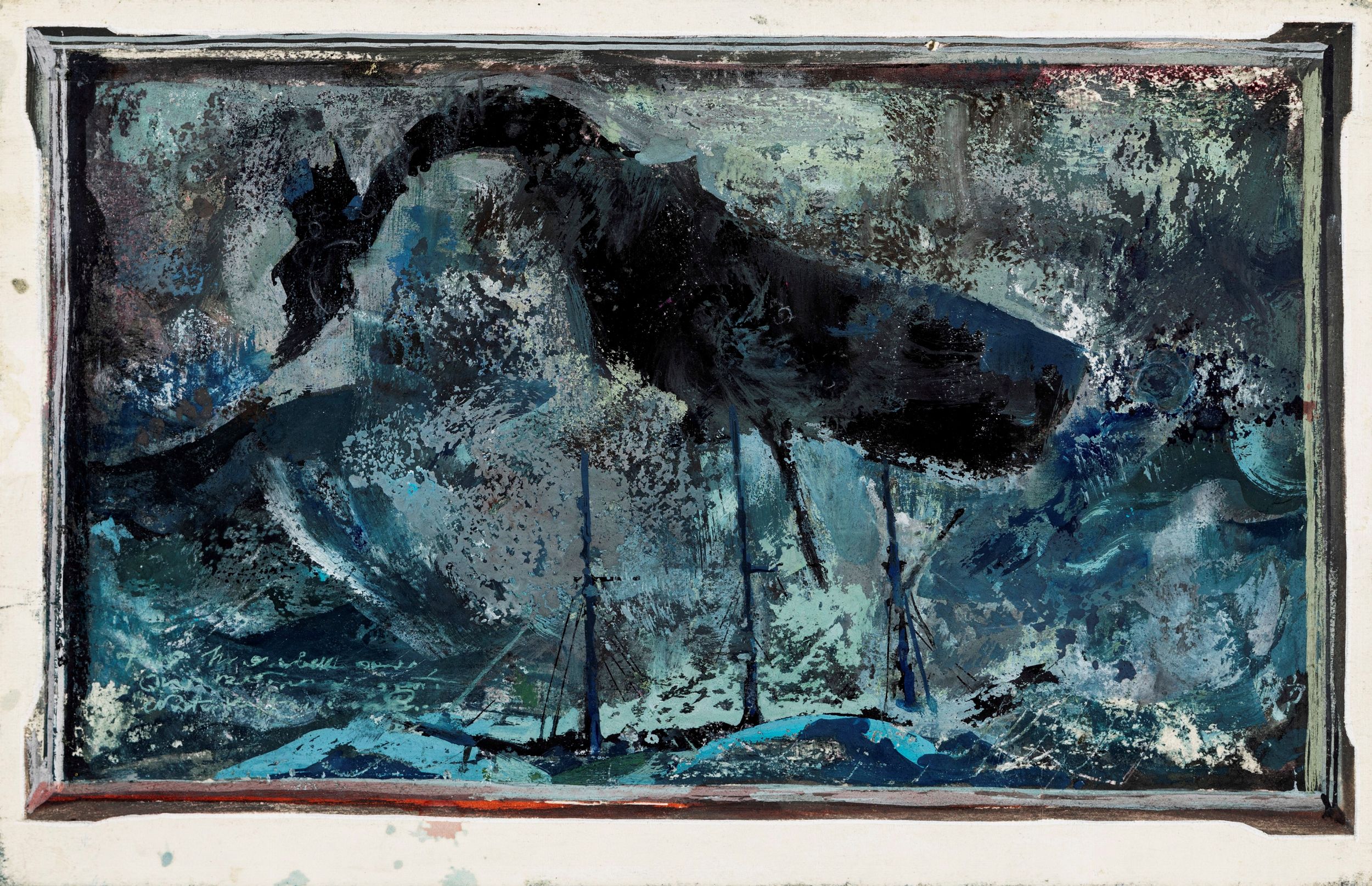 1965 Illustrazione originale realizzata da De Gaspari per il romanzo 'Moby Dick' di Herman Melville edito nel 1965.