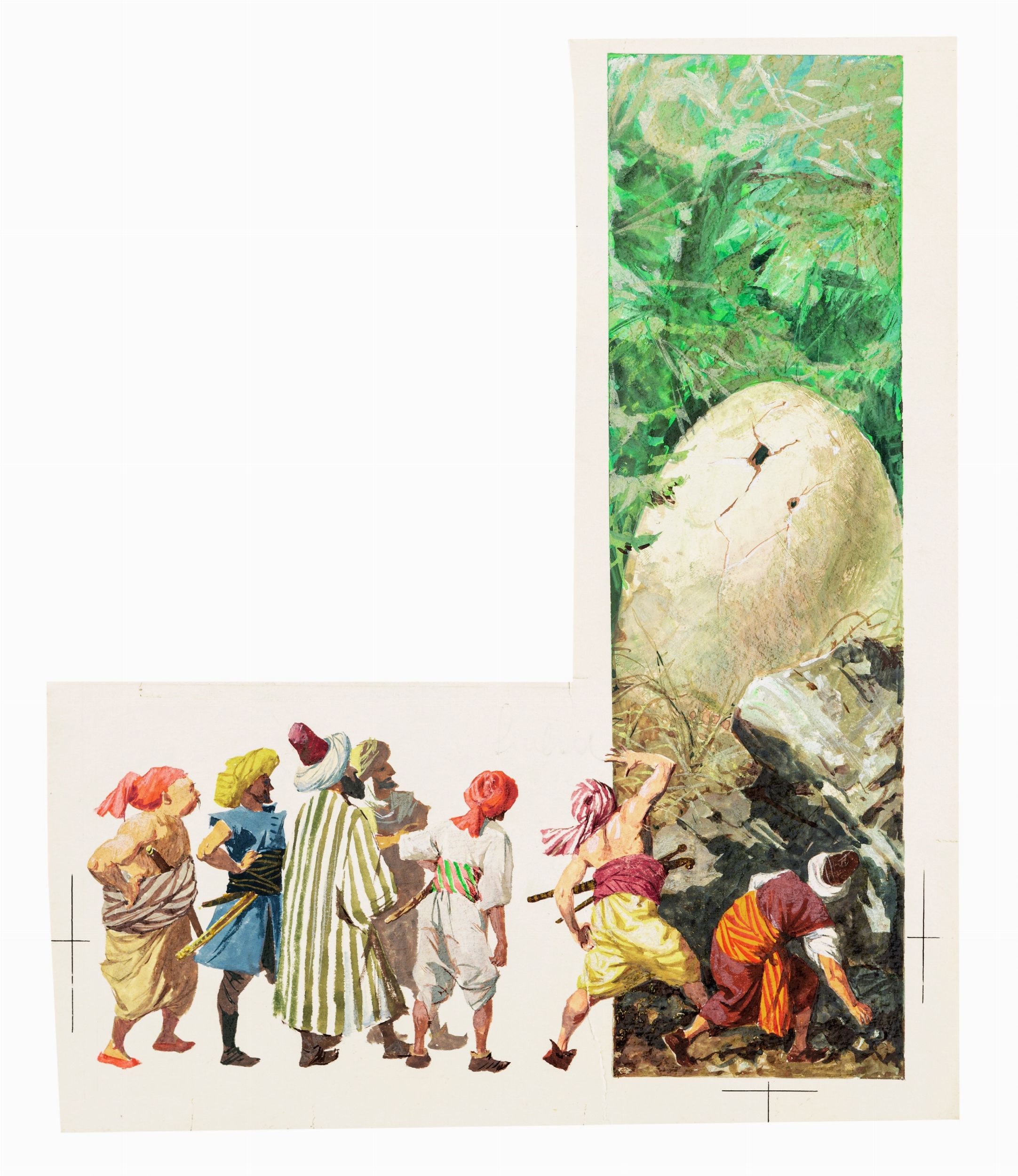 1964 Illustrazione originale realizzata da Maraja per la fiaba 'Sinbad il marinaio' edita nel 1964. Lieve piega.