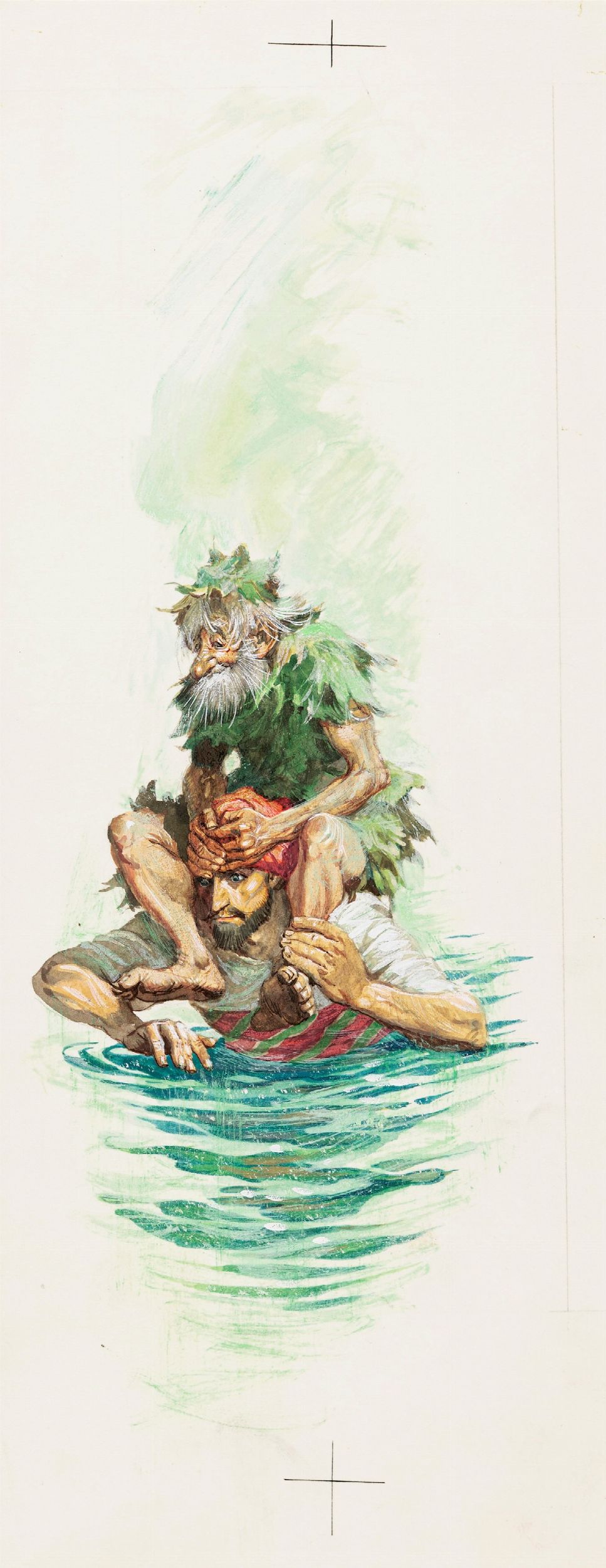 1964 Illustrazione originale realizzata da Maraja per la fiaba 'Sinbad il marinaio' edita nel 1964.