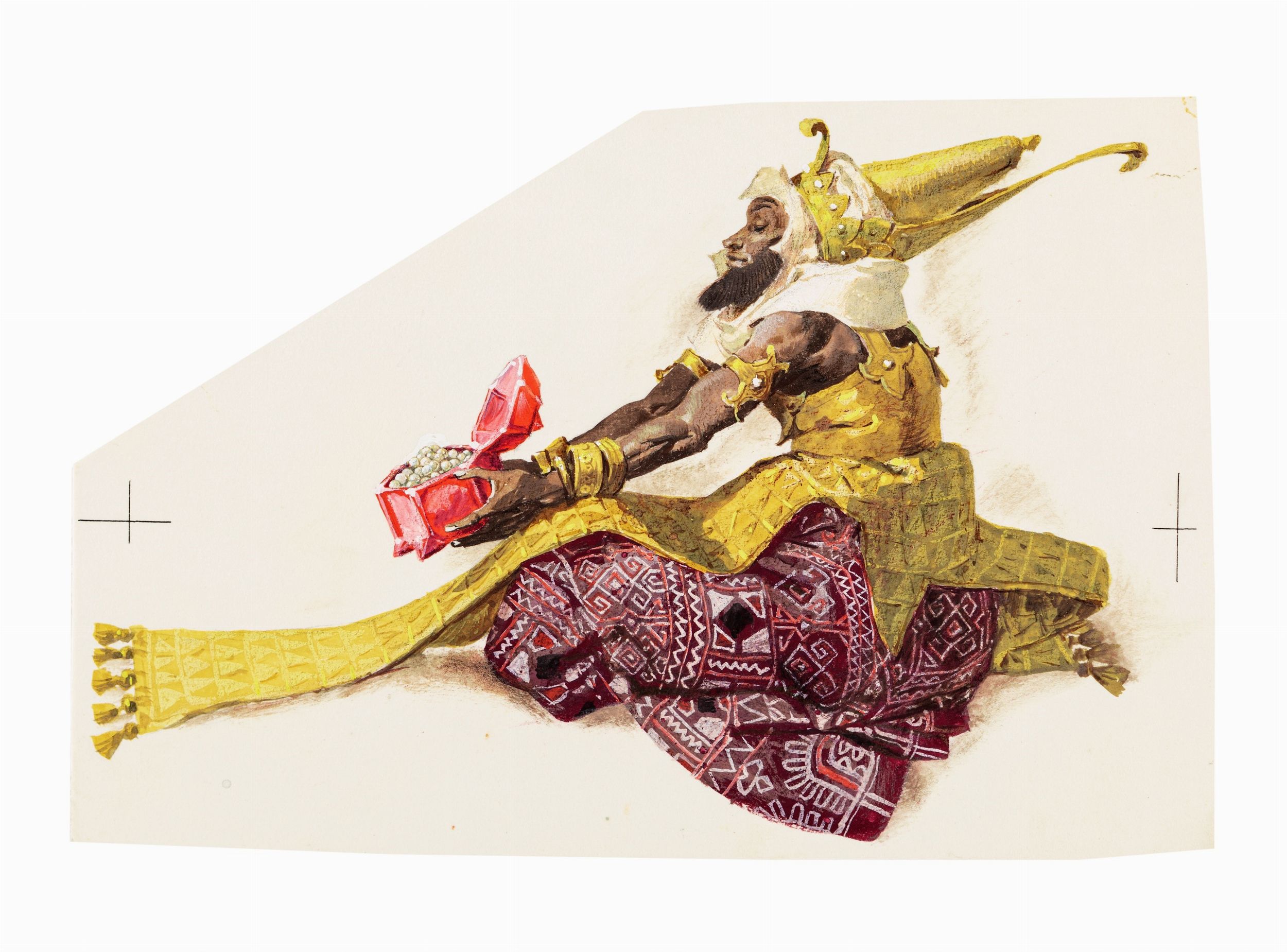 1964 Illustrazione originale realizzata da Maraja per la fiaba 'Sinbad il marinaio' edita nel 1964.
