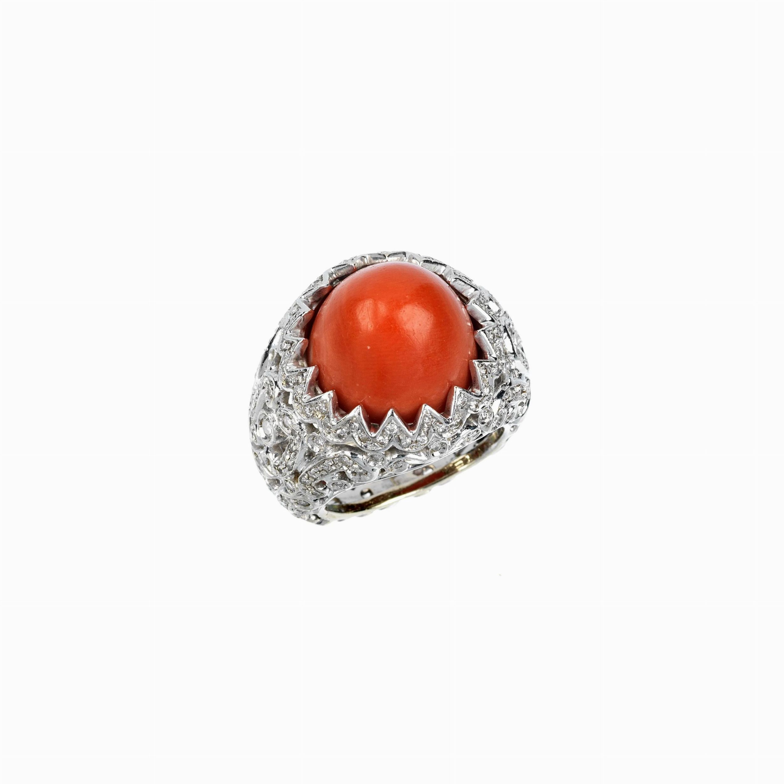 ANELLO A CUPOLA CON CORALLO E DIAMANTI