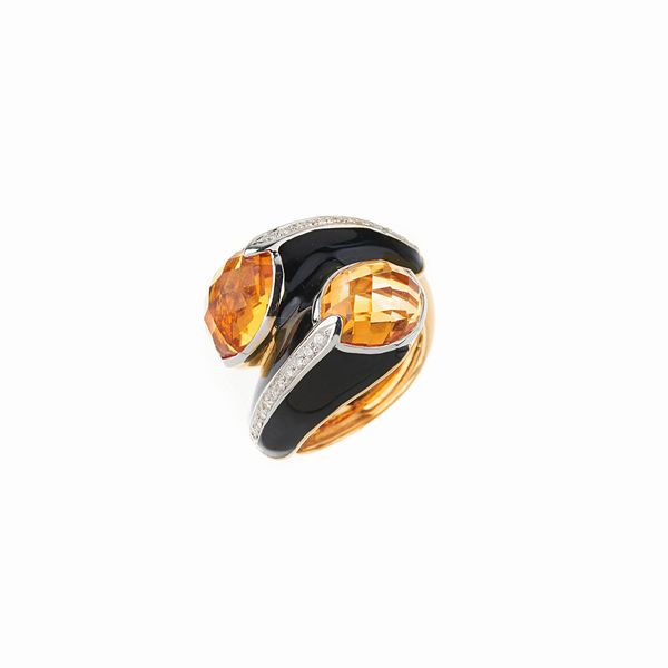 ANELLO CONTRARIE CON QUARZI CITRINI E DIAMANTI