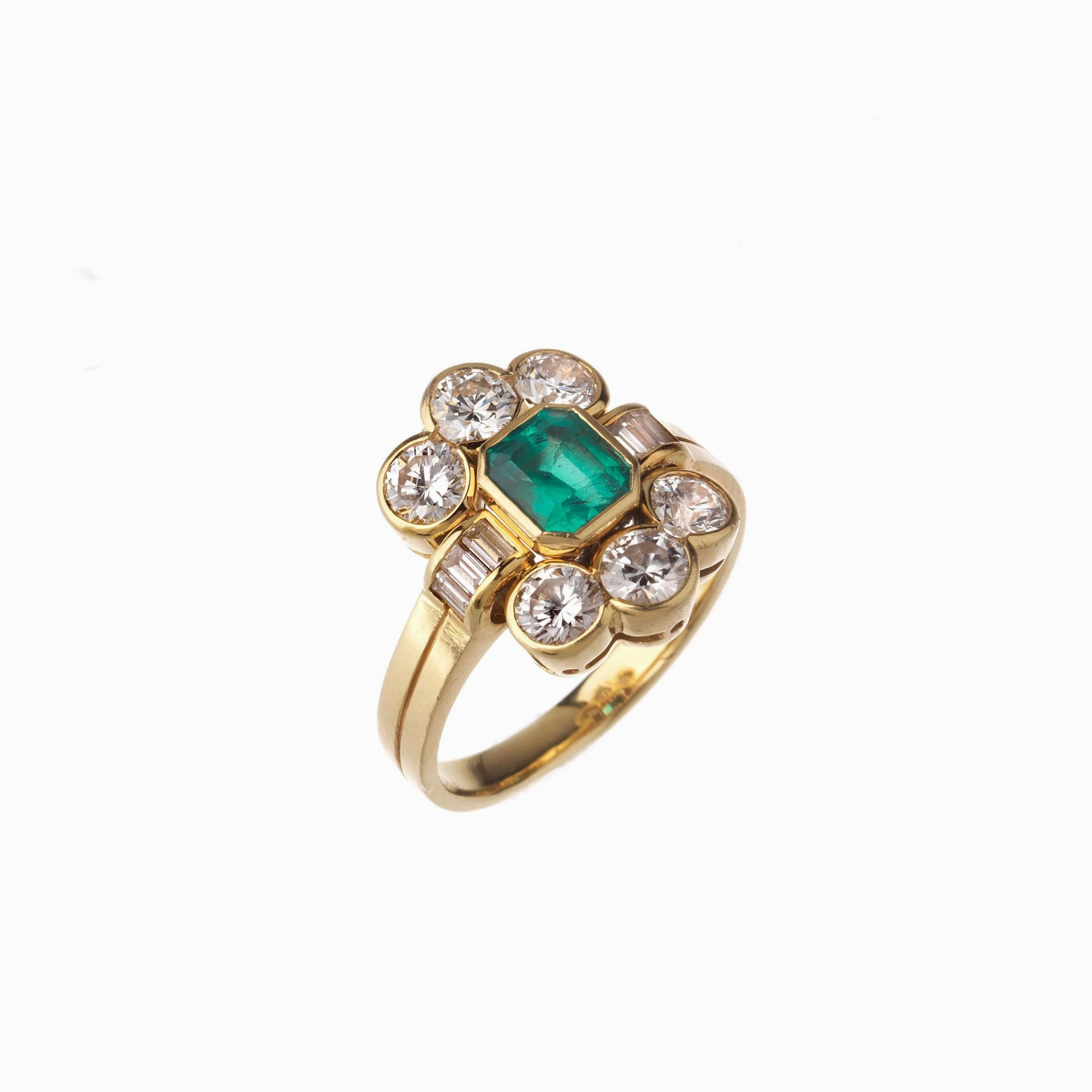 ANELLO FLOREALE CON SMERALDO E DIAMANTI