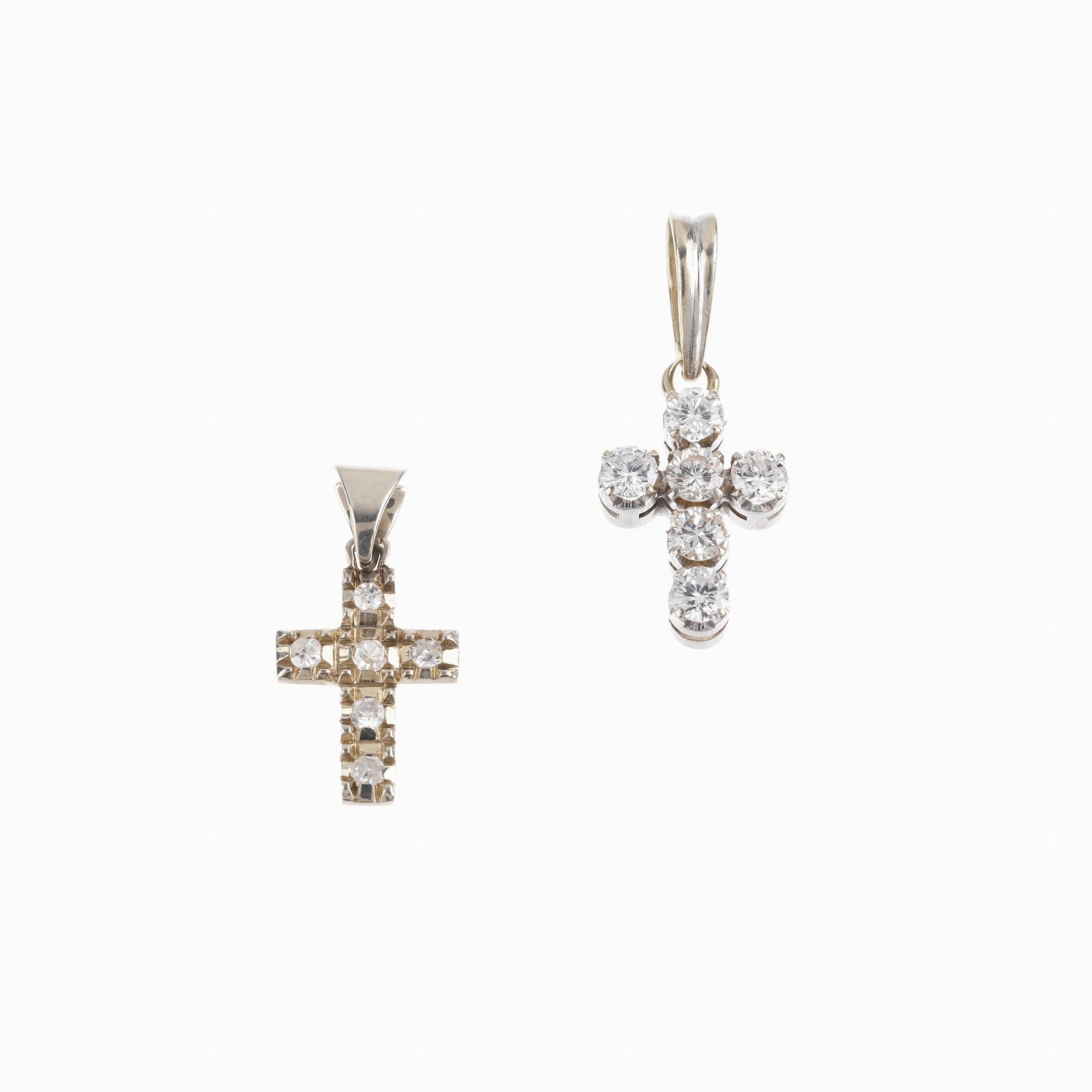 DUE PENDENTI A FORMA DI CROCE CON DIAMANTI